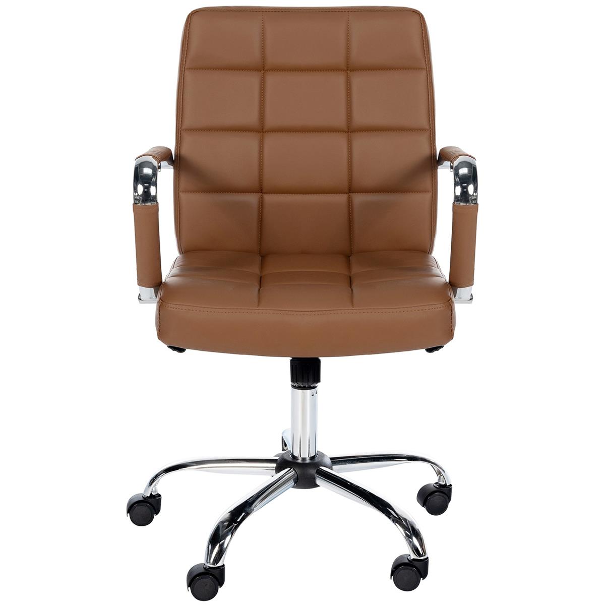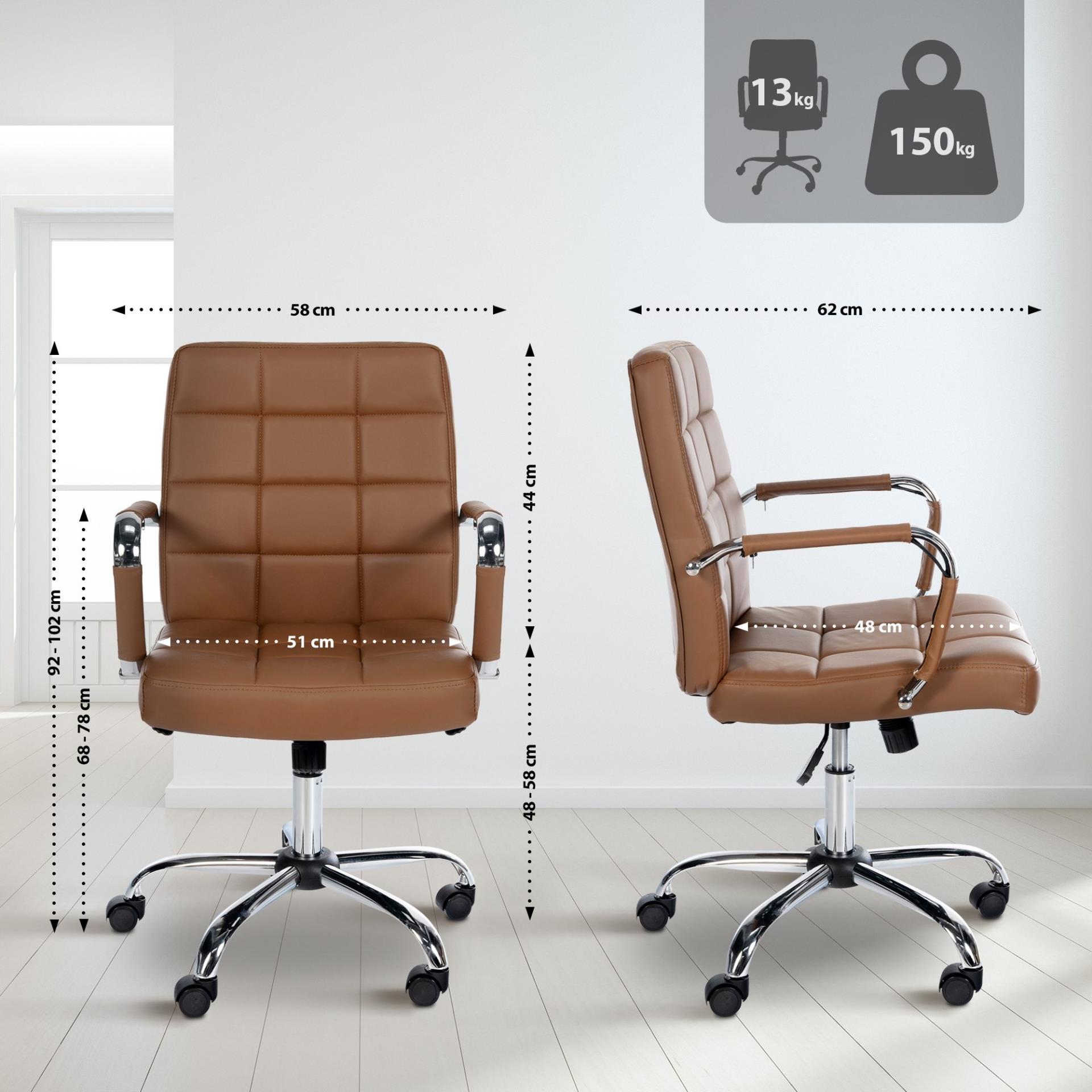 Krzesło Biurowe BAXTER, Wygodna Miękka Wyściółka, Metalowa Podstawa, Ekoskóra kolor Brązowy