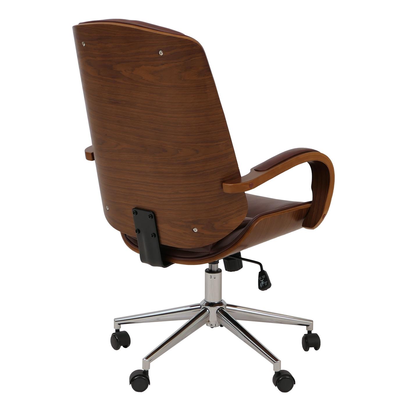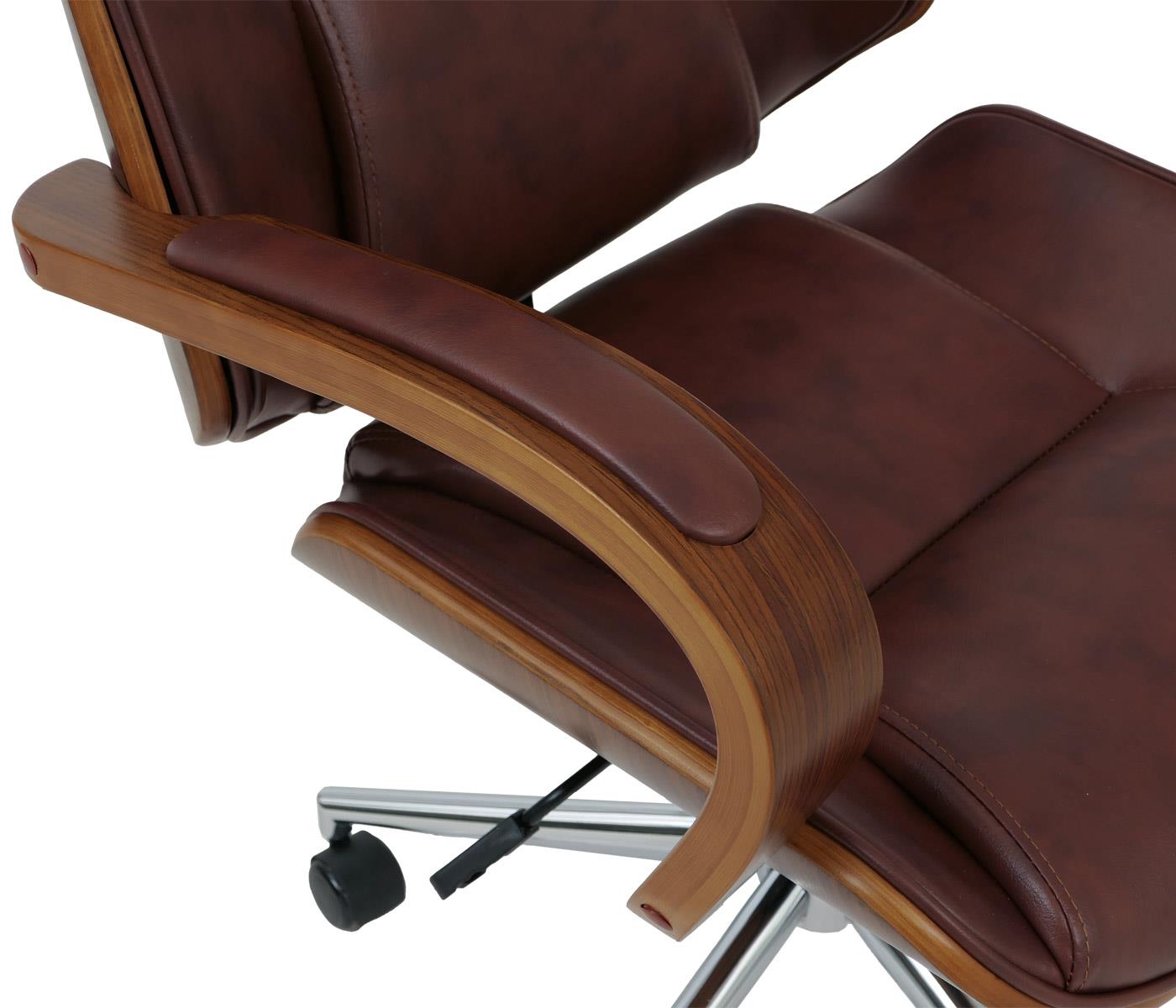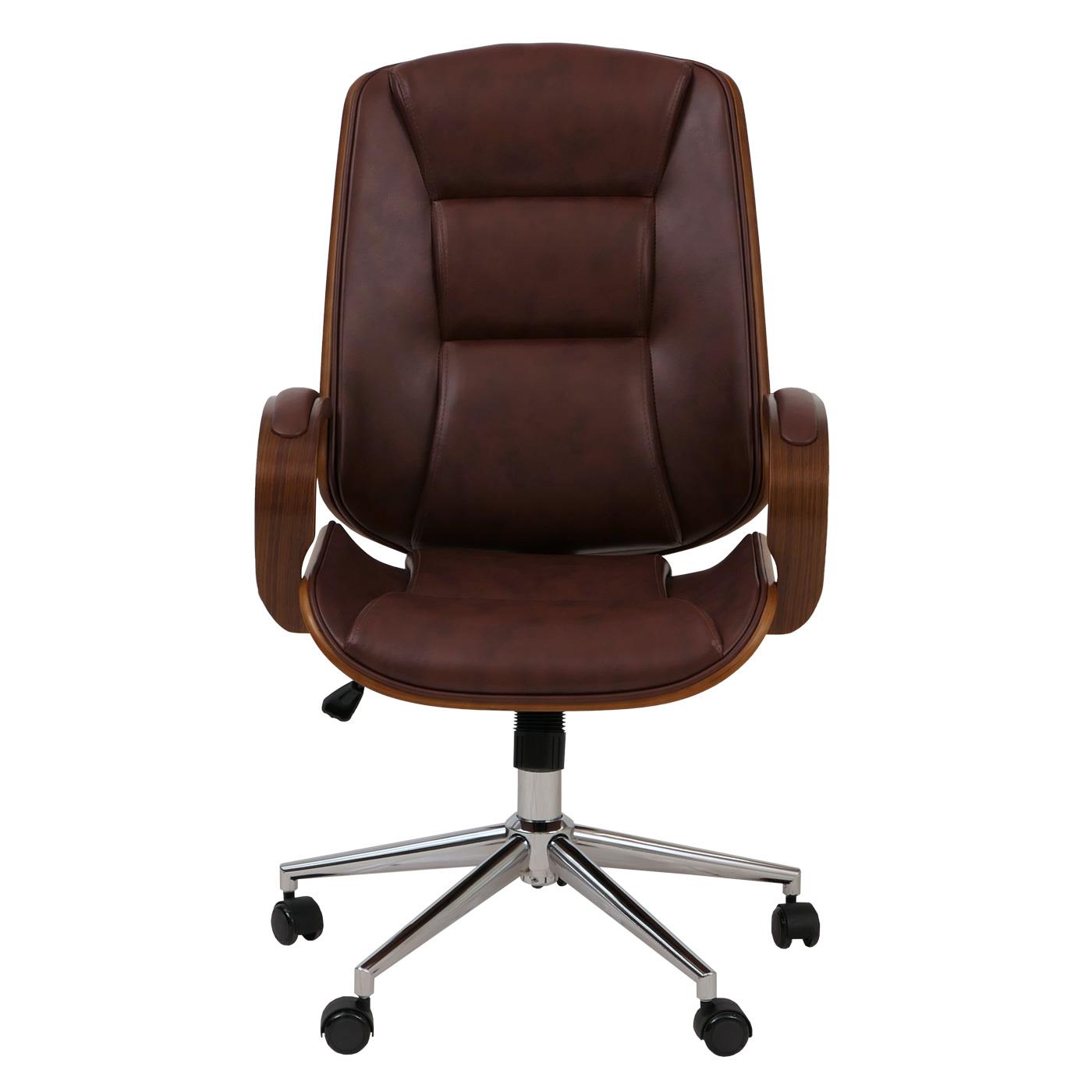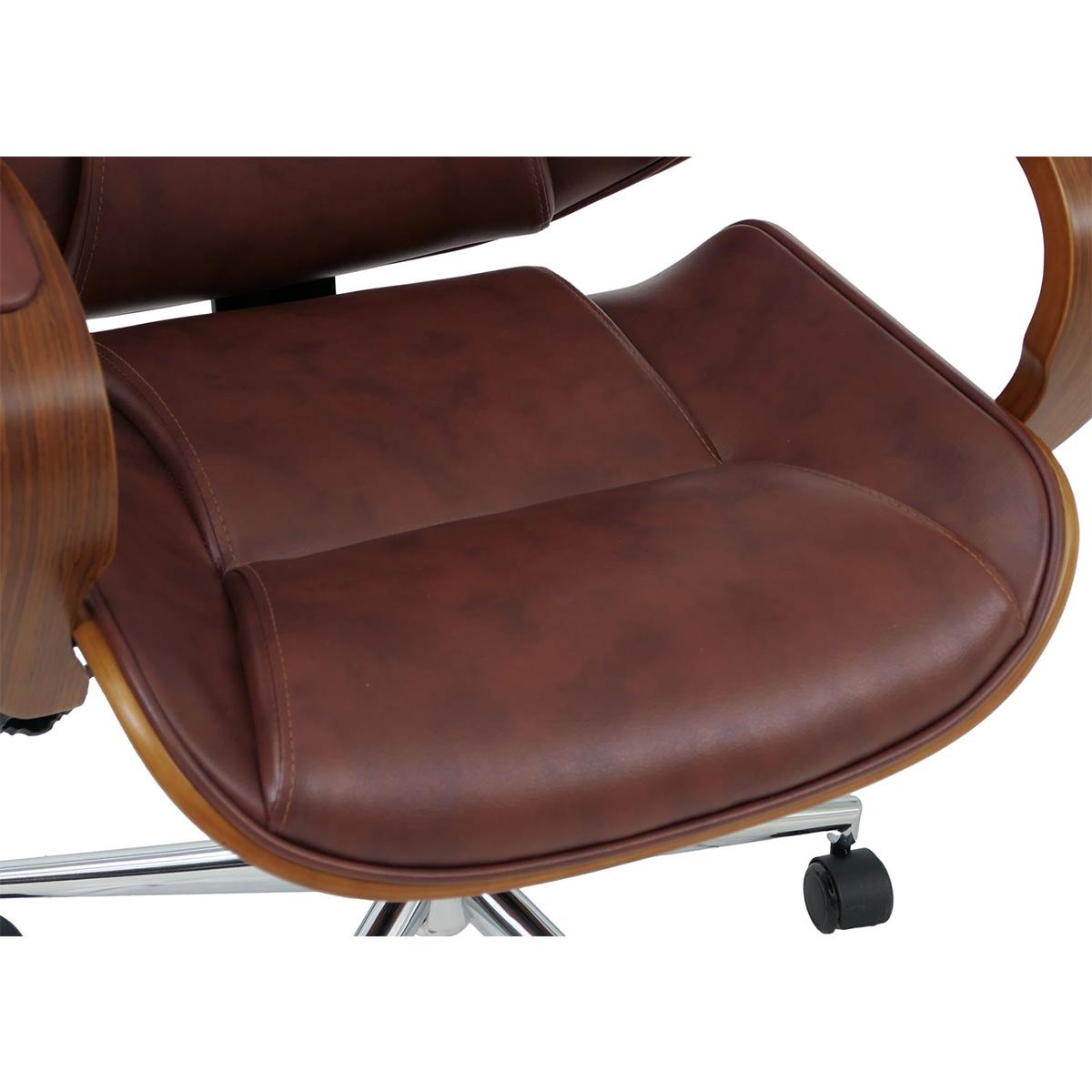Krzesło Biurowe CLARIN, Obfita Wyściółka, Elegancki Design, Okleina kolor Orzech i Skóra, kolor Brązowy