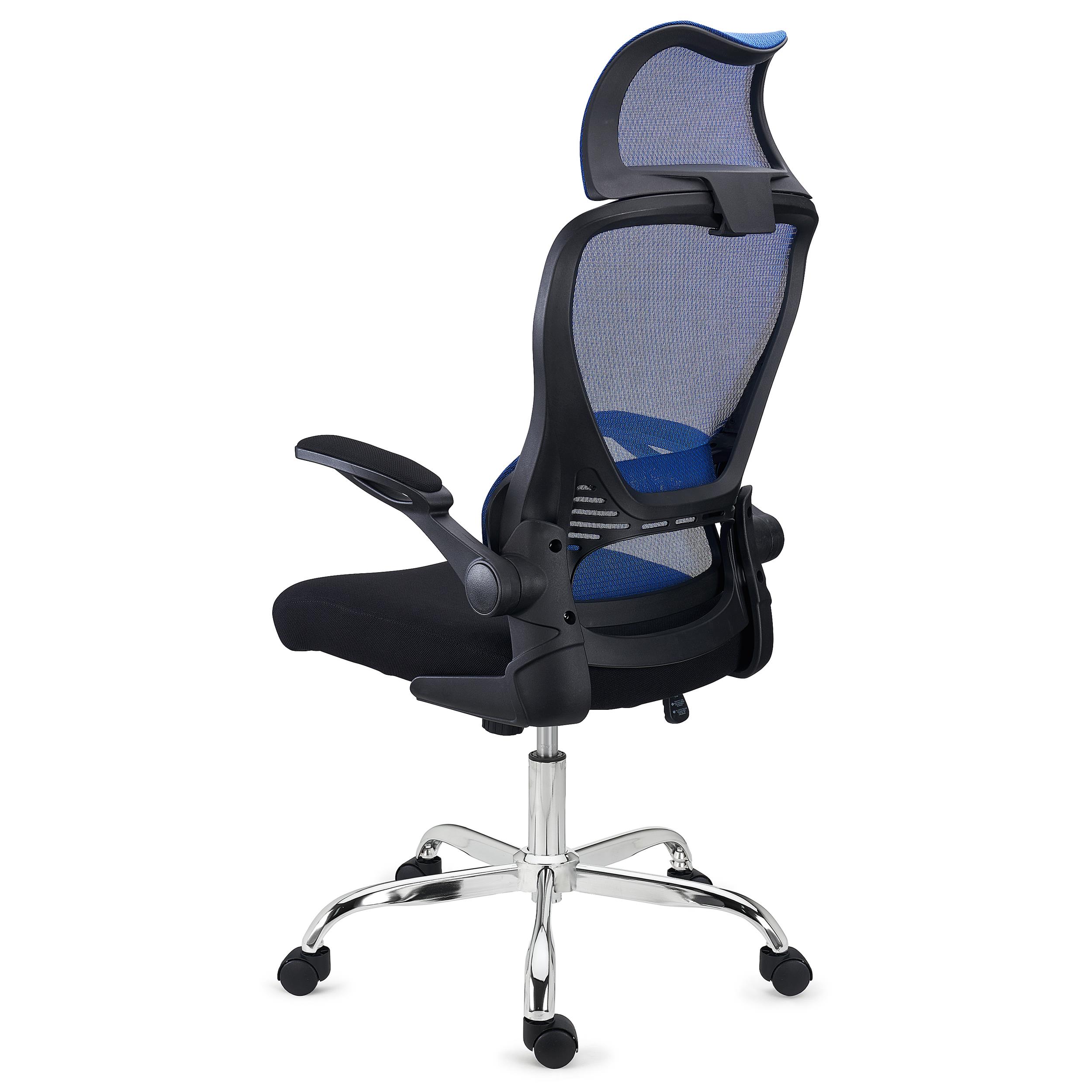 Krzesło Biurowe CORFU, Zagłówek, Składane Podłokietniki, Ergonomiczny Design, Niebieskie