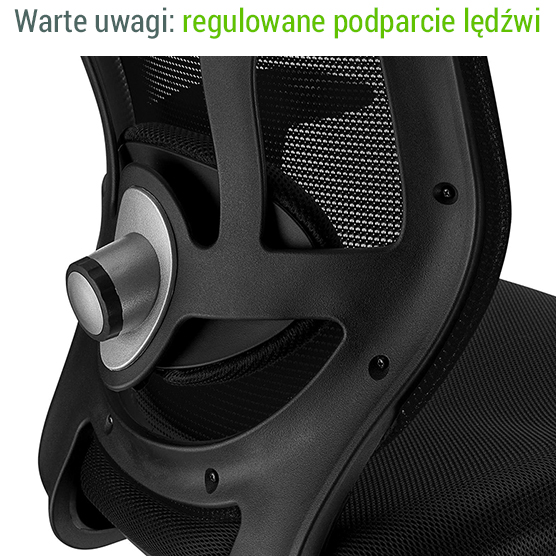 • Siatkowe oparcie z regulowanym podparciem lędźwiowym