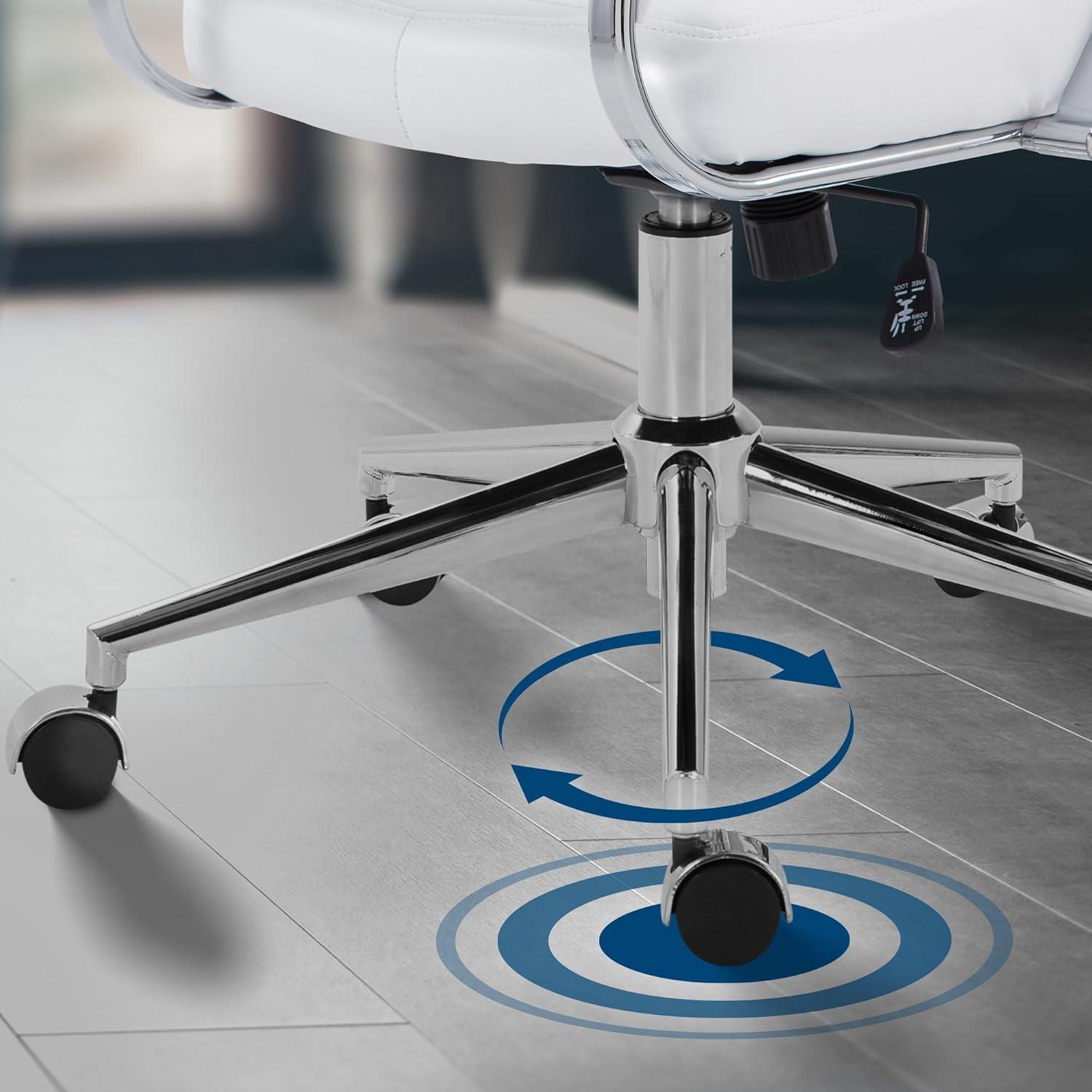 Do produkcji fotela wykorzystano wyłącznie wysokiej jakości materiały, wśród których wyróżnia się tapicerka ze skóry syntetycznej z pzeszyciami. Ponadto fotel dostępny jest w kilku kolorach, abyś mógł znaleźć ten, który idealnie pasuje do wystroju Twojego biura. Chromowany stelaż i podstawa mają udźwig do 130 kg, zapewniając maksymalną stabilność i wytrzymałość.