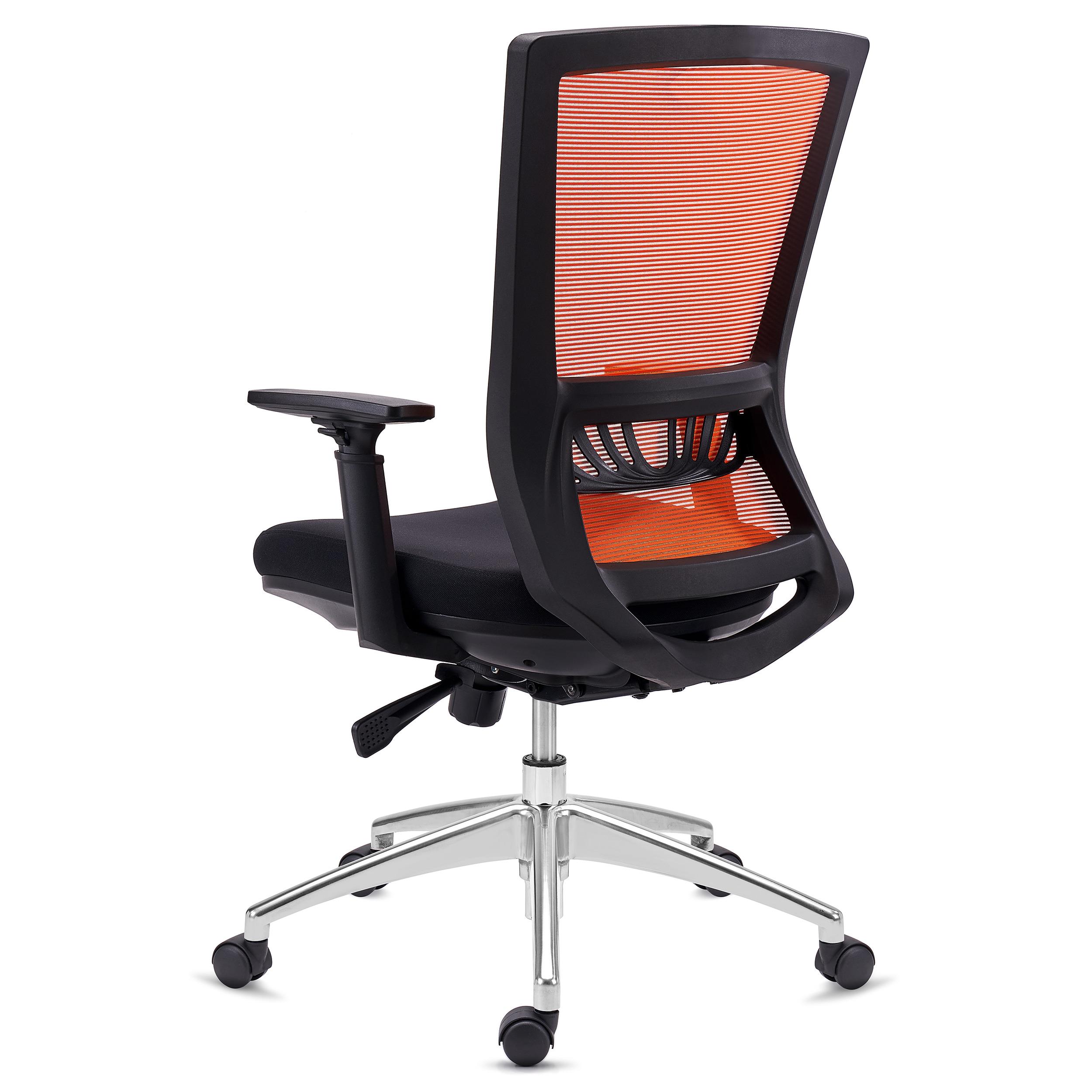 Krzesło Biurowe MAGNUM, 8 godzin Pracy, Aluminiowa Podstawa, Podparcie Lędźwiowe, Pomarańczowe