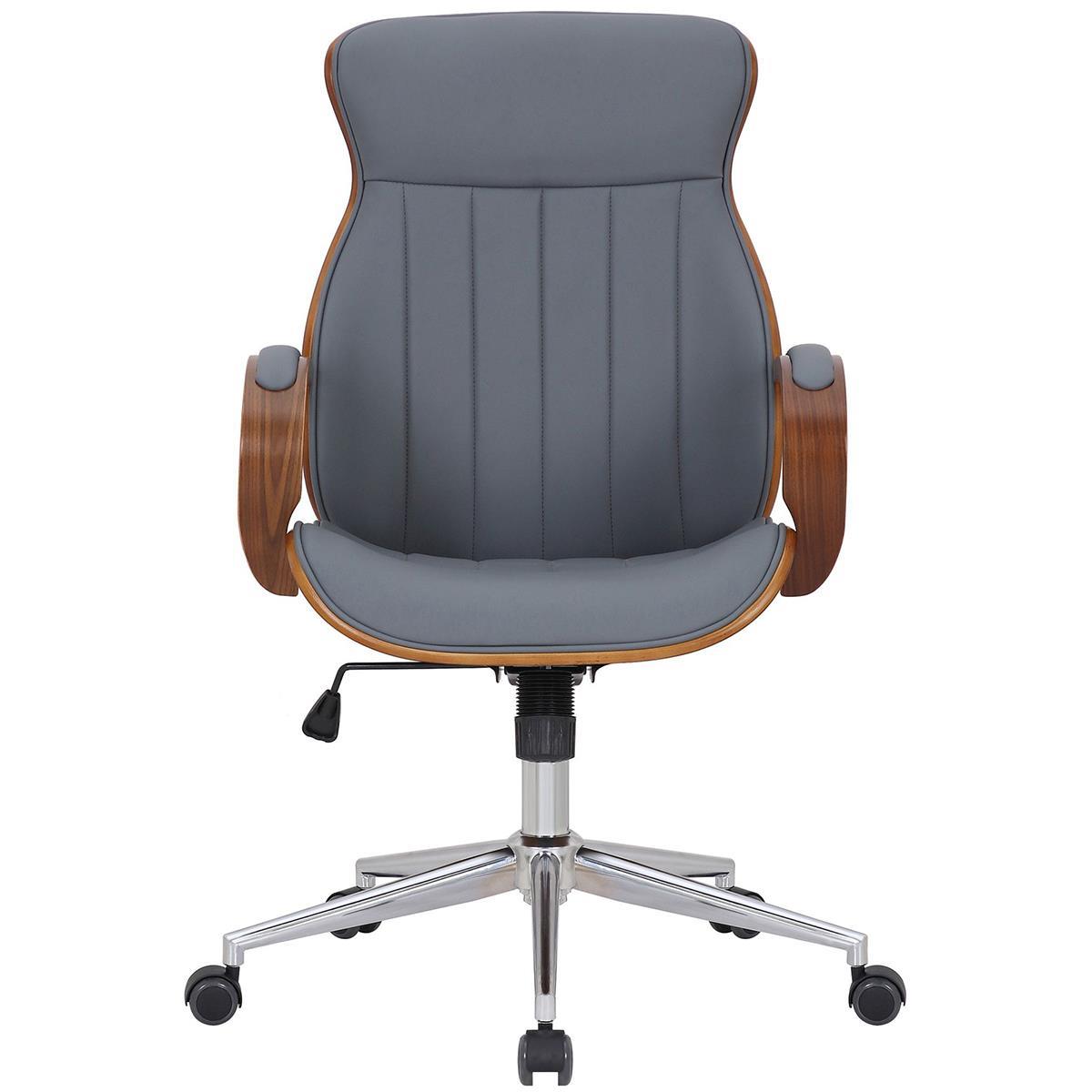 Krzesło Biurowe MELINDA, Elegancki Nowoczesny Design, Drewno kolor Orzech i Skóra kolor Szary