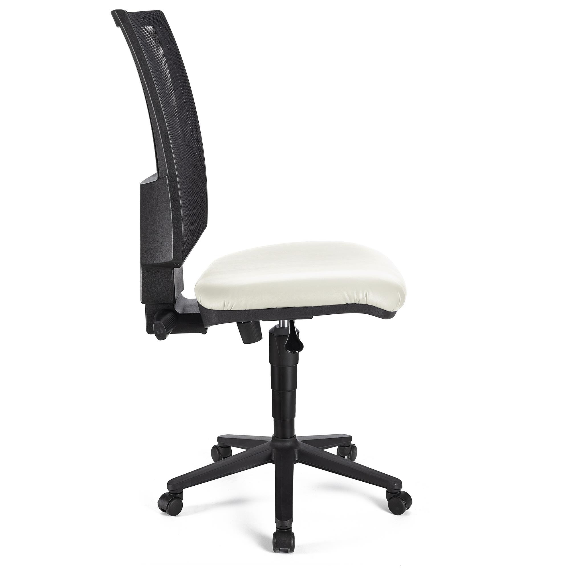 Krzesło Biurowe PANDORA BEZ PODŁOKIETNIKÓW SKÓRA, Regulowane Oparcie Siatkowe, Gruba Tapicerka, Białe