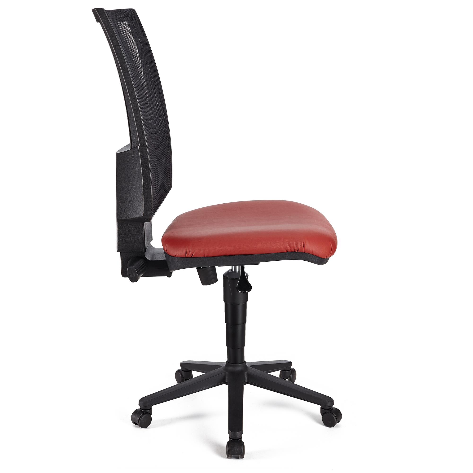 Krzesło Biurowe PANDORA BEZ PODŁOKIETNIKÓW SKÓRA, Regulowane Oparcie Siatkowe, Gruba Tapicerka, Czerwone