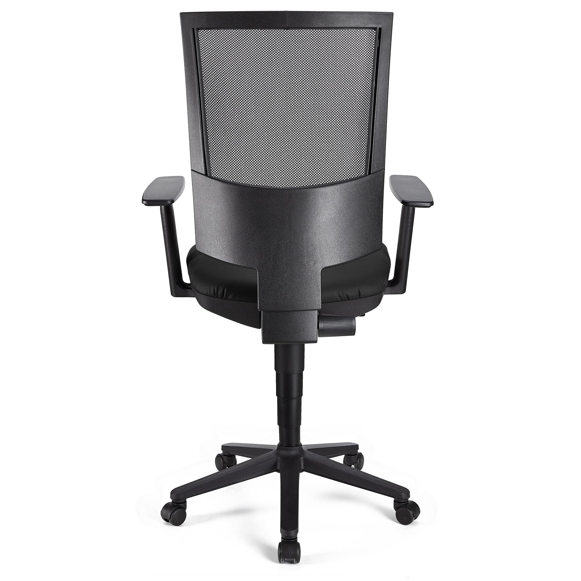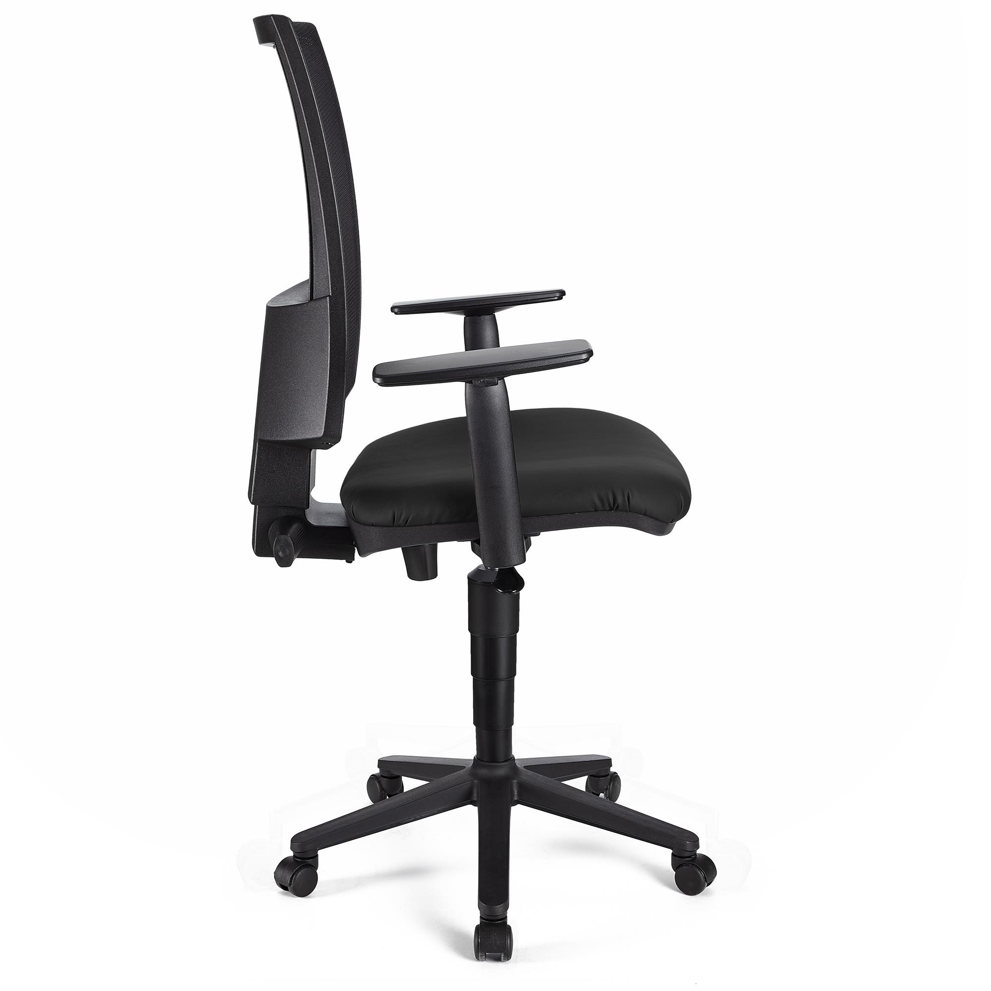 Krzesło Biurowe PANDORA PLUS SKÓRA, Siatkowe Oparcie, Regulowane Podłokietniki, Gruba Tapicerka, Czarne
