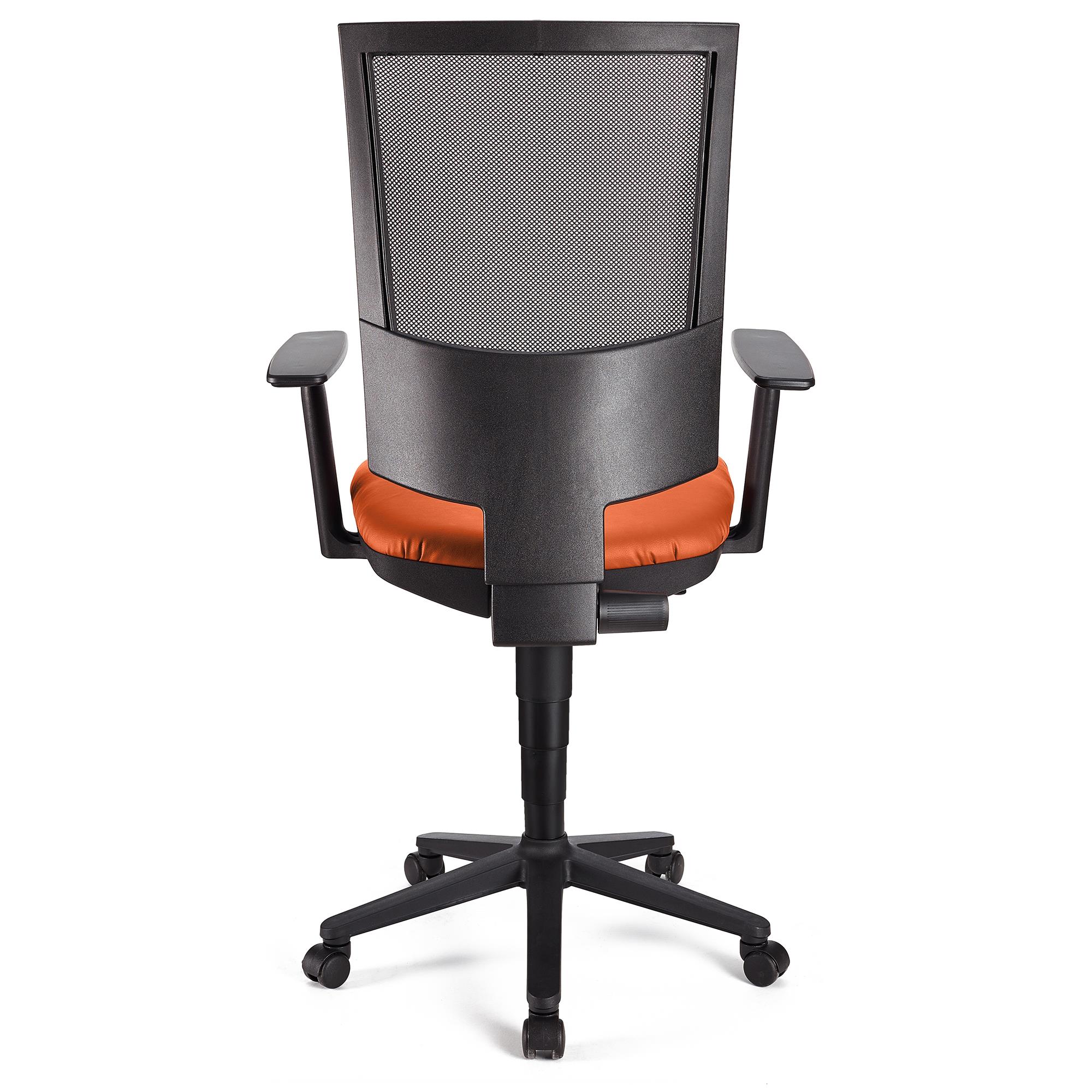 Krzesło Biurowe PANDORA PLUS SKÓRA, Siatkowe Oparcie, Regulowane Podłokietniki, Gruba Tapicerka, Pomarańczowe