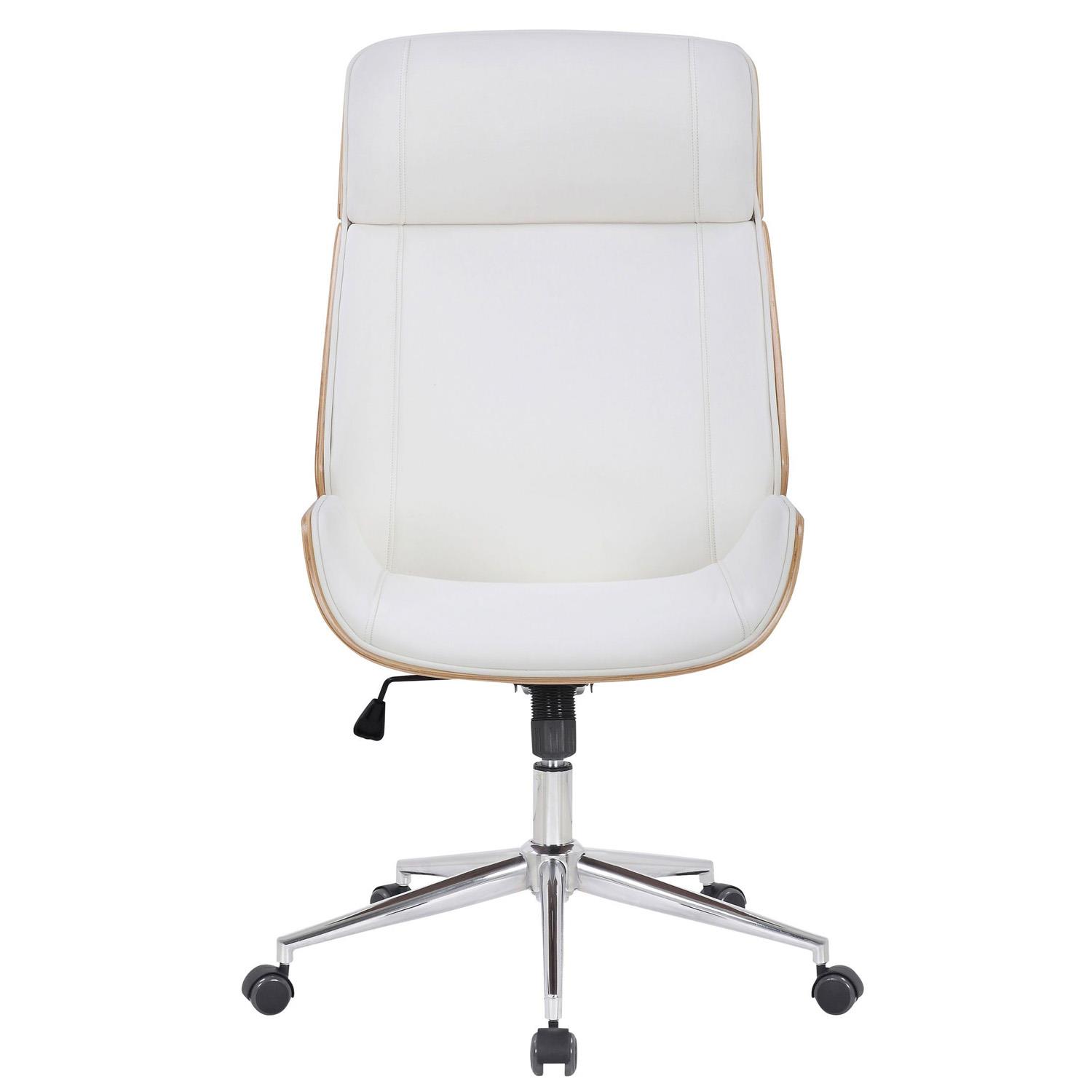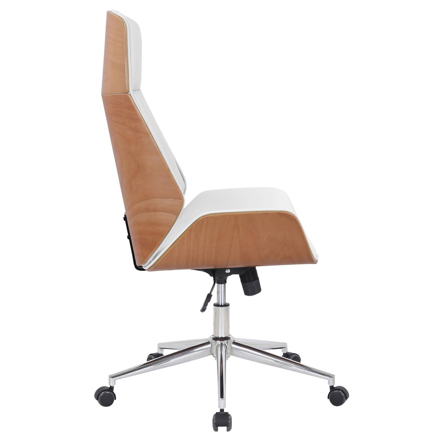 Krzesło Biurowe VAREN, Nowoczesny i Elegancki Design, Jasne Drewno i Skóra kolor Biały