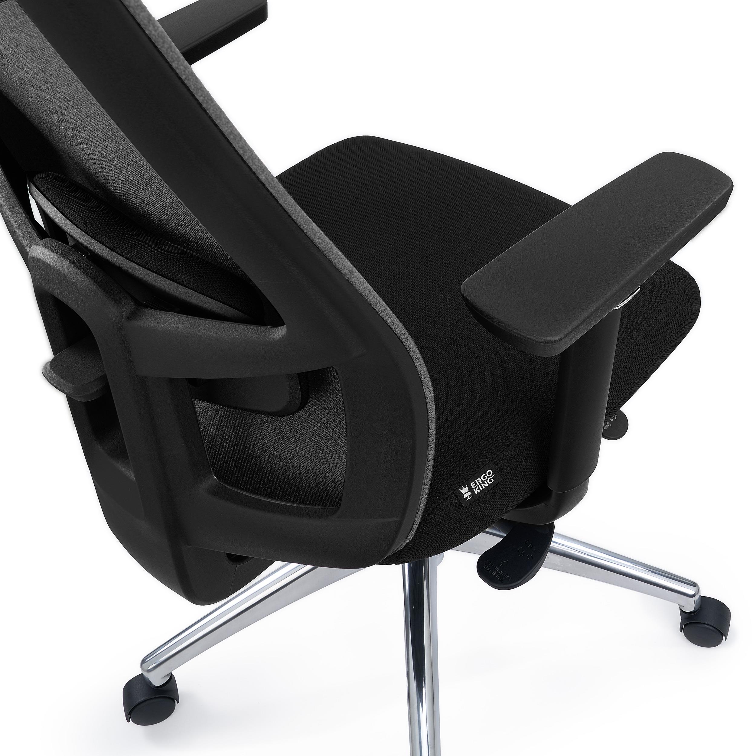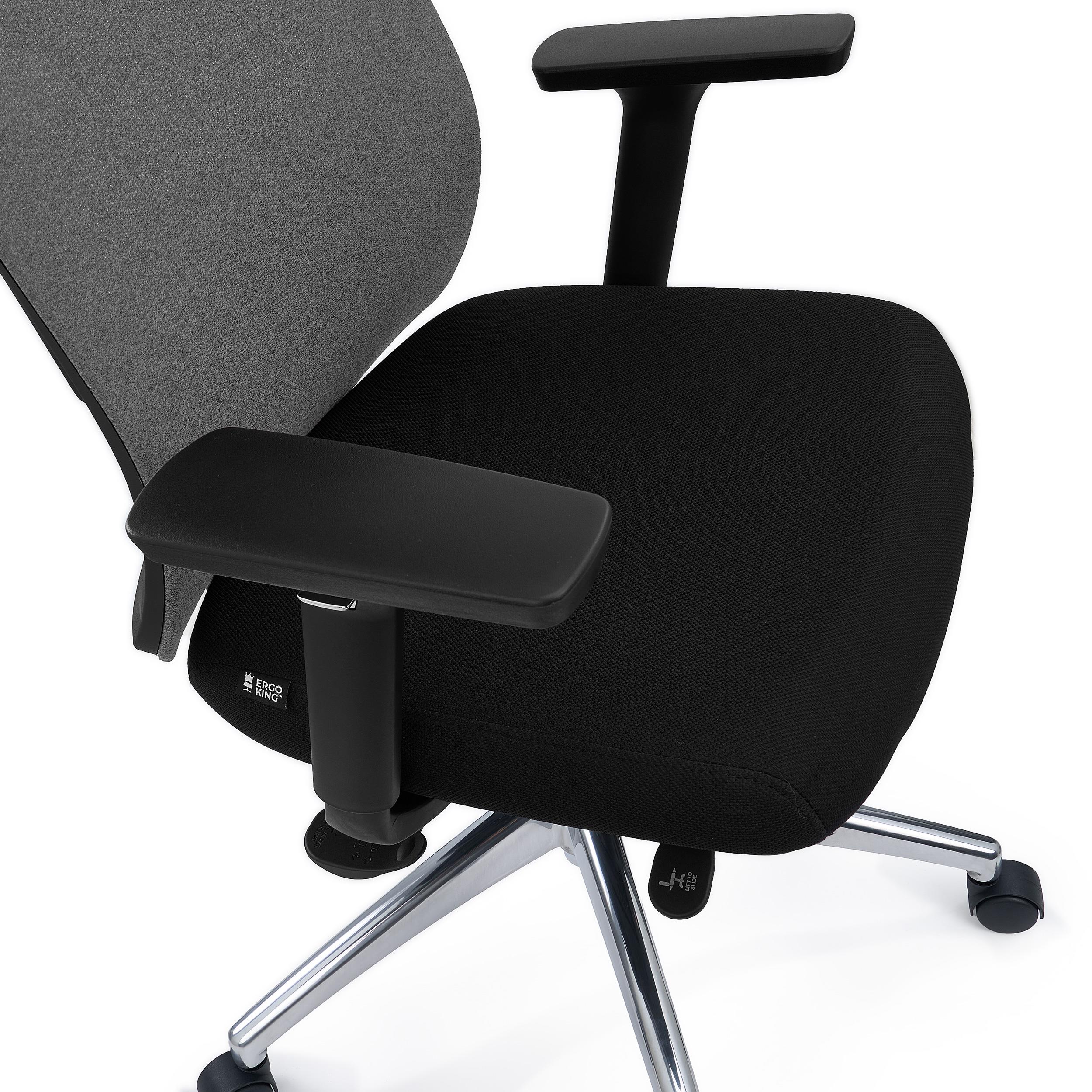Podłokietniki z regulacją 3D (wysokość, głębokość i kąt) uzupełniają produkt o zaawansowanych właściwościach ergonomicznych. Posiadają one miękkie gumowe nakładki. Z punktu widzenia percepcji jakości i wytrzymałości, jest to produkt z najwyższej półki.