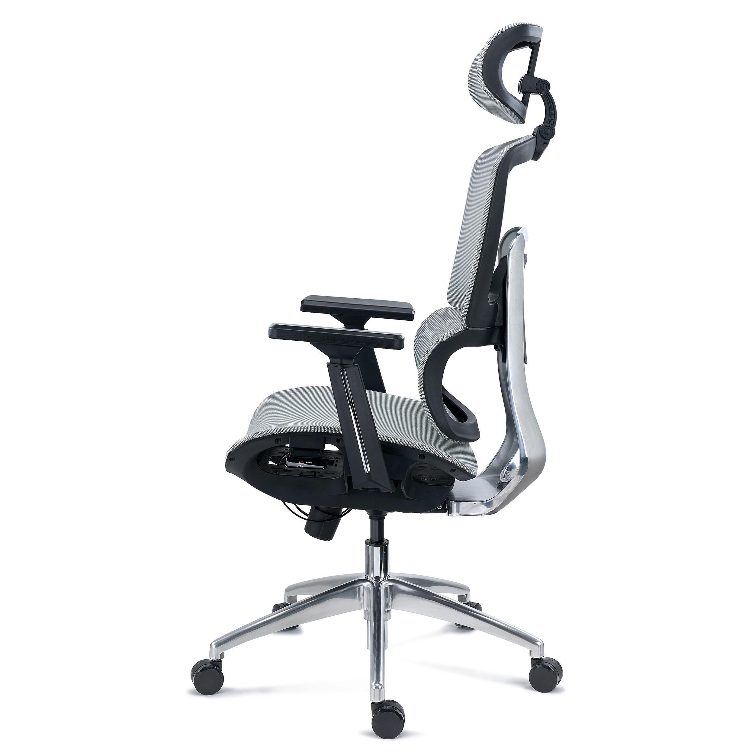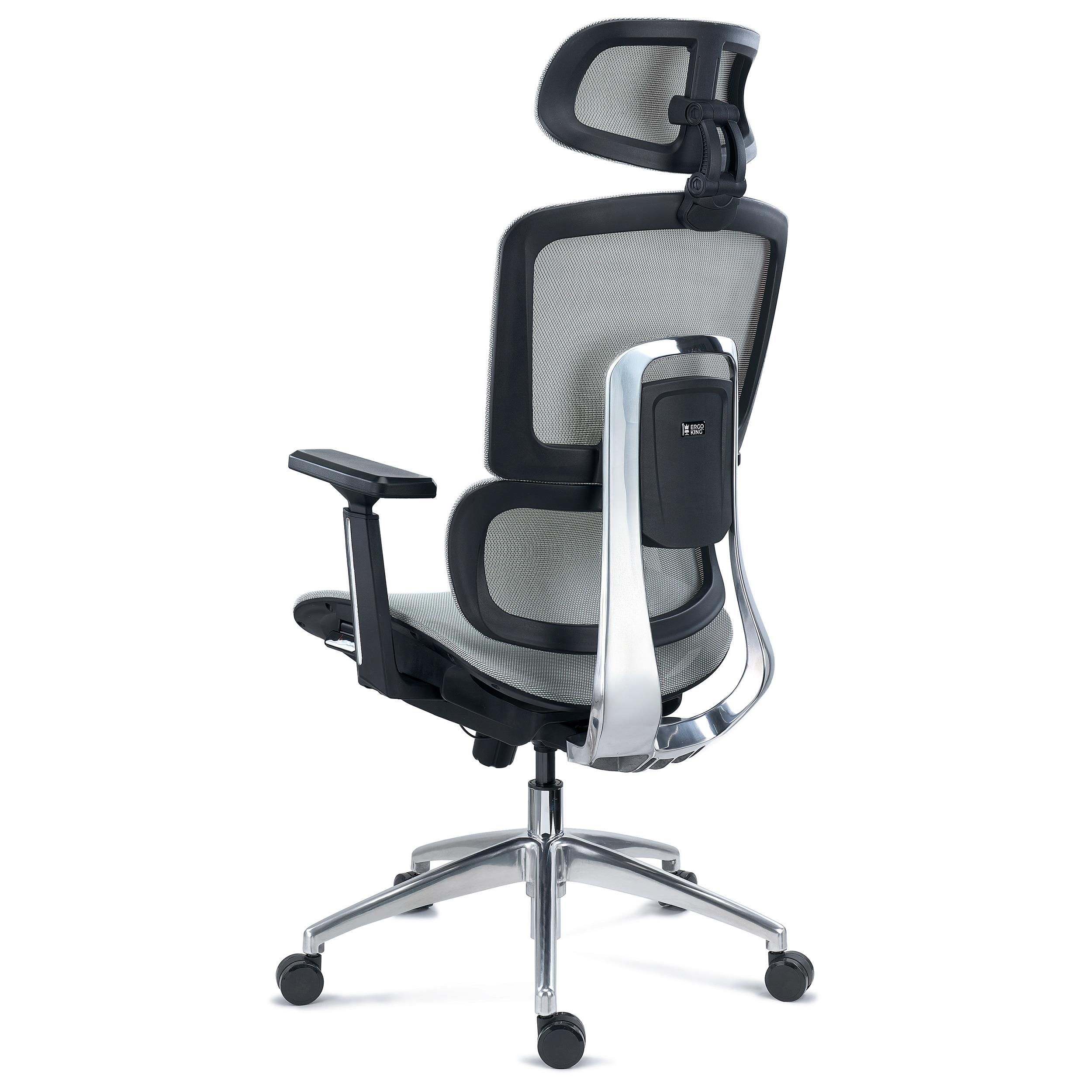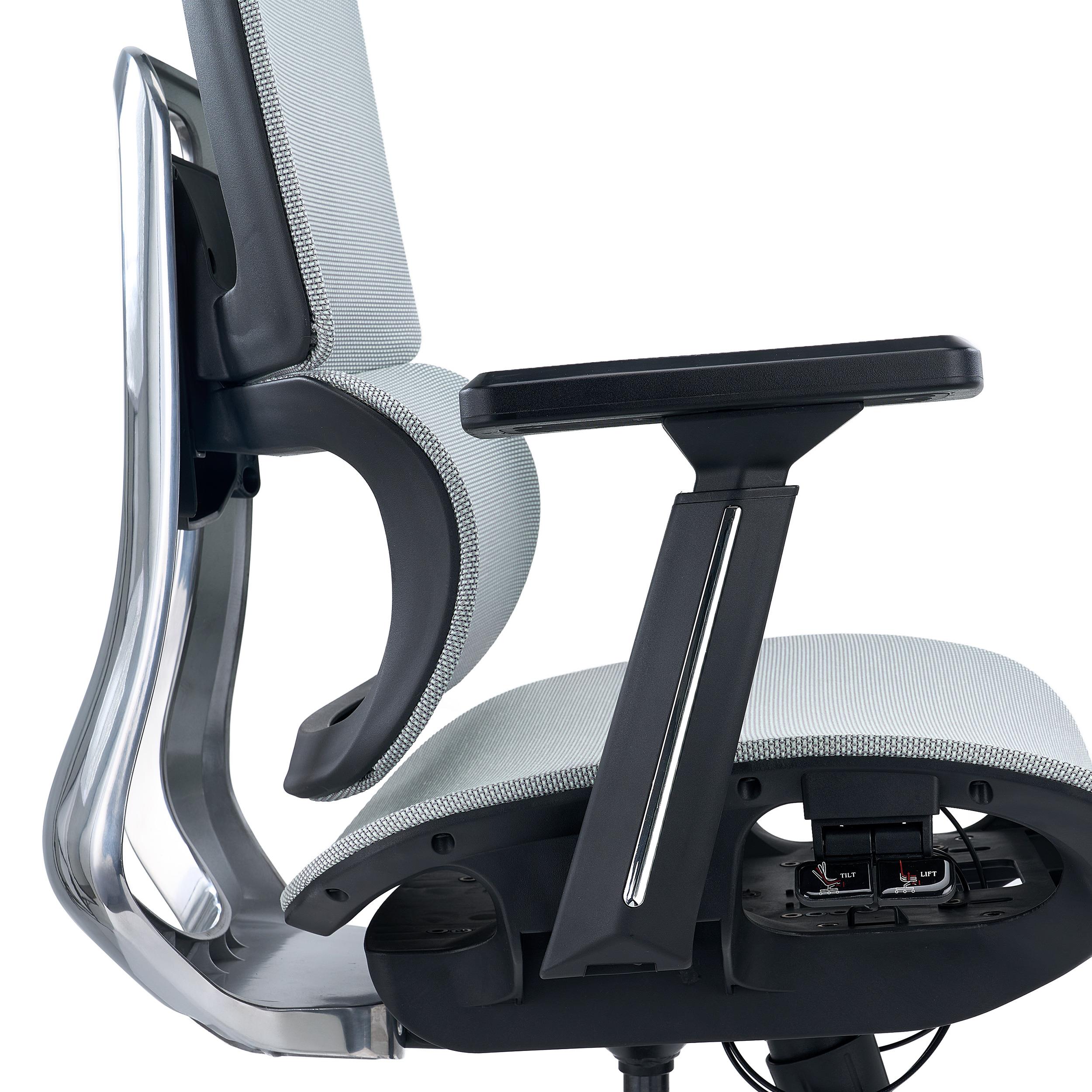 Jakość produktu ma oddzwierciedlenie w błyszczącej, polerowanej aluminiowej podstawie i konstrukcji oparcia. Fakt, że podstawa została wyposażona we wzmocniony siłownik gazowy klasy 4, gwarantuje wytrzymałość do 150 kg maksymalnej wagi. Wielopowierzchniowe kółka chronią podłogę, umożliwiając korzystanie z fotela na każdym rodzaju powierzchni.