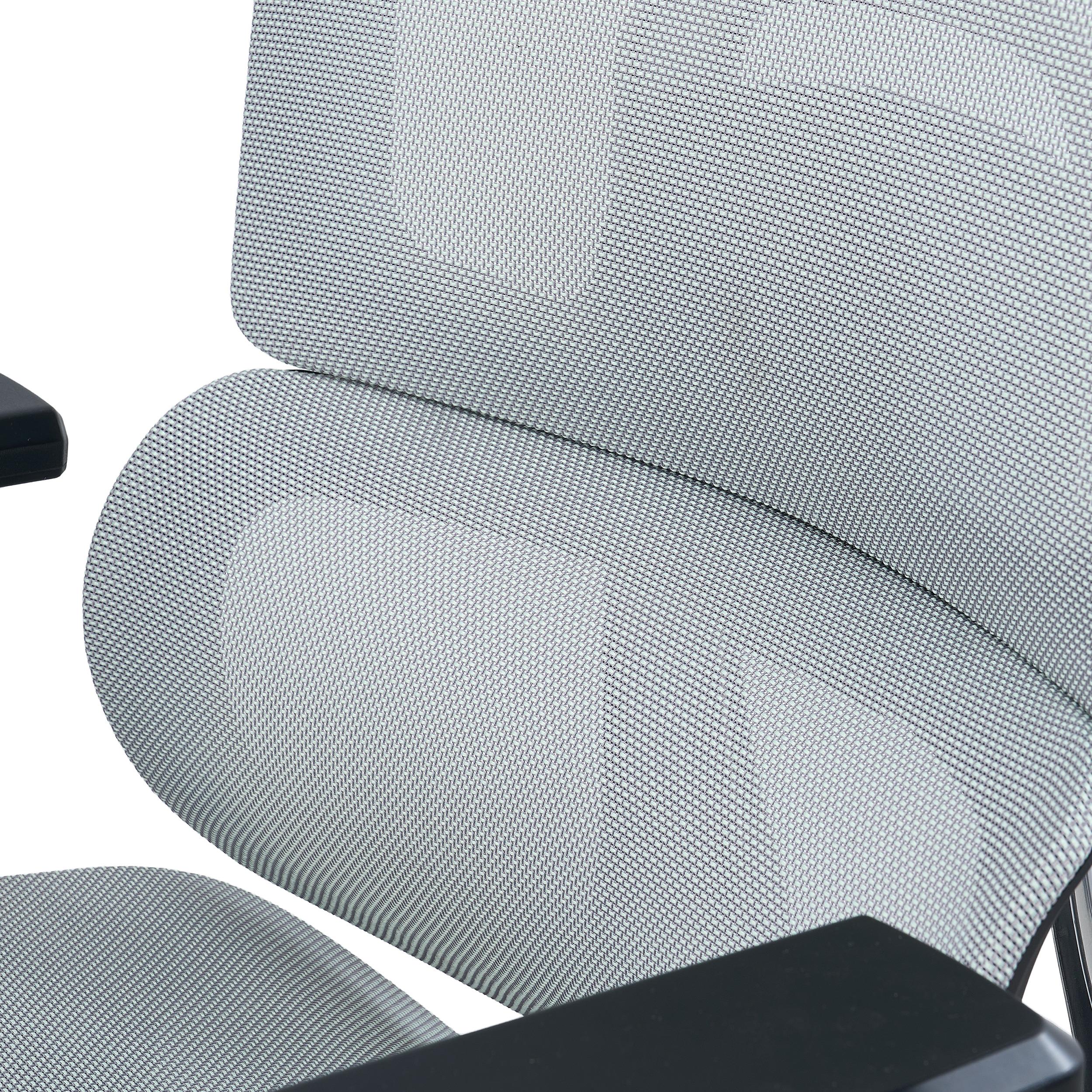 Ergonomiczne oparcie z oddychającej siatki posiada dynamiczne podparcie lędźwiowe. Jego zaawansowane kształty podążają za krzywizną pleców, zapewniając optymalną postawę. Wypukłe podparcie lędźwiowe zapewnia ciągłe wsparcie dolnej części pleców, będąc jednocześnie częścią niezależną od reszty oparcia, umożliwiając dynamiczne dopasowanie do siedzącego.