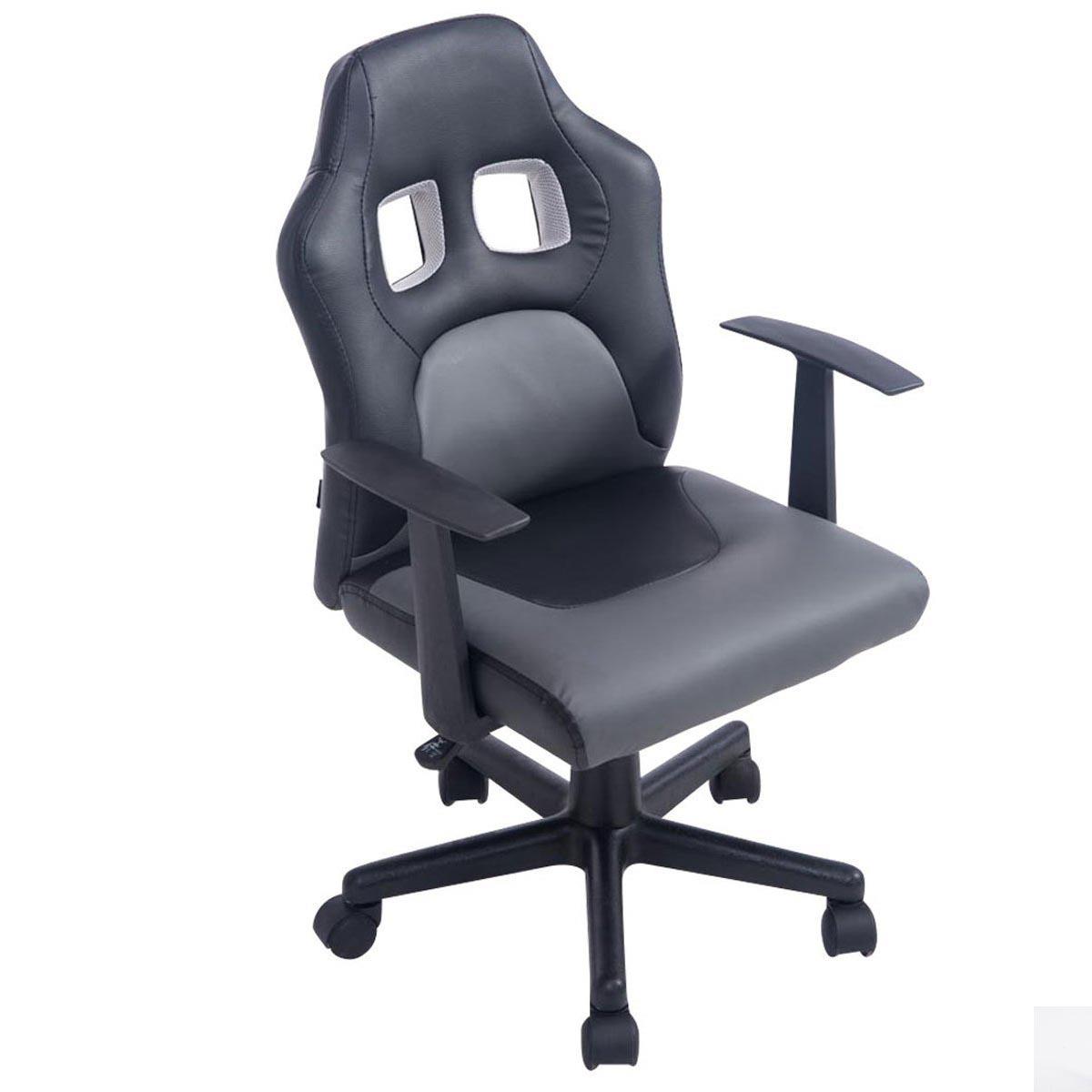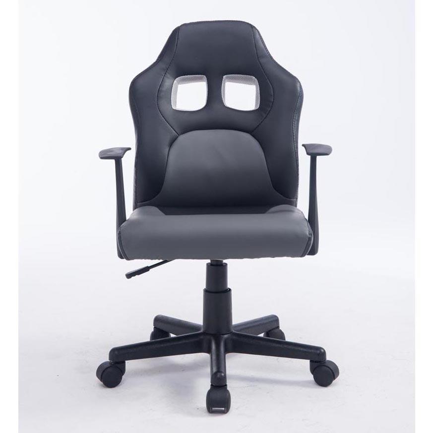 Krzesło Gamingowe dla Dziecka GOKU, Sportowy Design, Skóra kolor Czarno-Szary