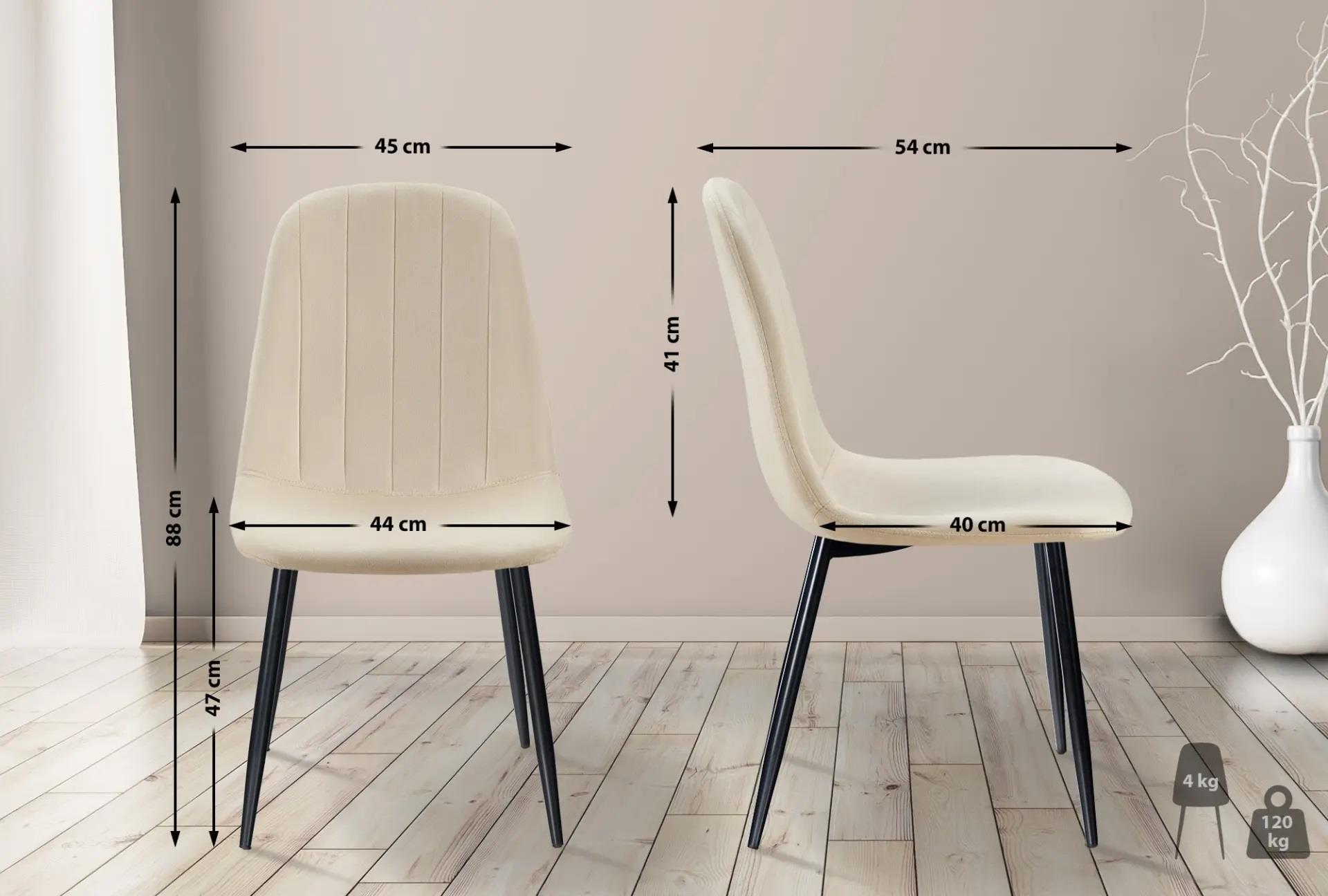 Stelaż wykonany jest z matowego czarnego metalu. Solidny materiał zapewnia trwałość krzesła, a jednocześnie nadaje mu nowoczesny i elegancki charakter. Nogi zostały wyposażone w antypoślizgowe stopki, które jednocześnie ochronią podłogę, na której krzesło będzie użytkowane.