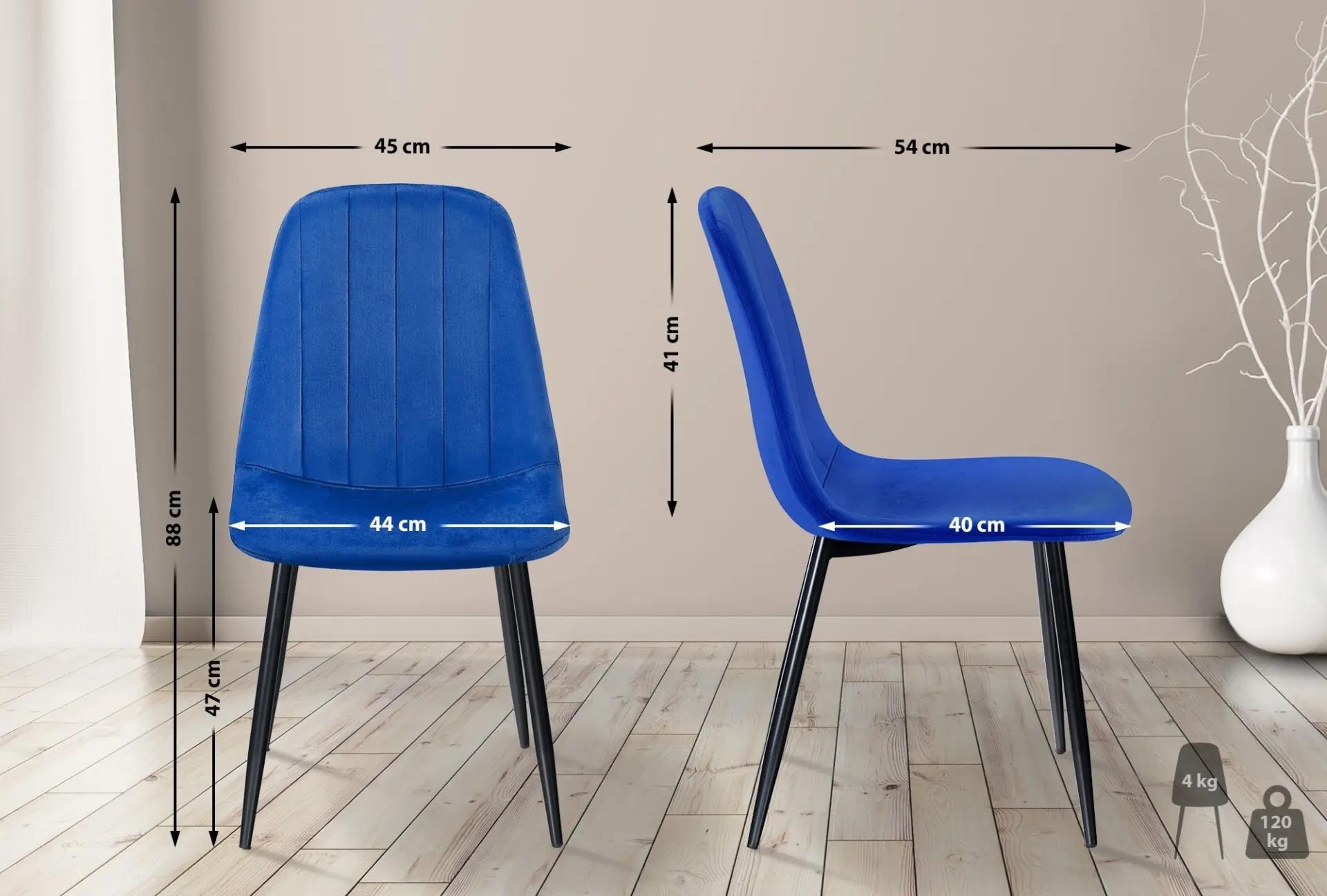 Stelaż wykonany jest z matowego czarnego metalu. Solidny materiał zapewnia trwałość krzesła, a jednocześnie nadaje mu nowoczesny i elegancki charakter. Nogi zostały wyposażone w antypoślizgowe stopki, które jednocześnie ochronią podłogę, na której krzesło będzie użytkowane.