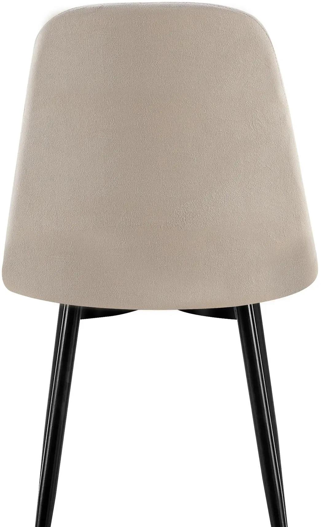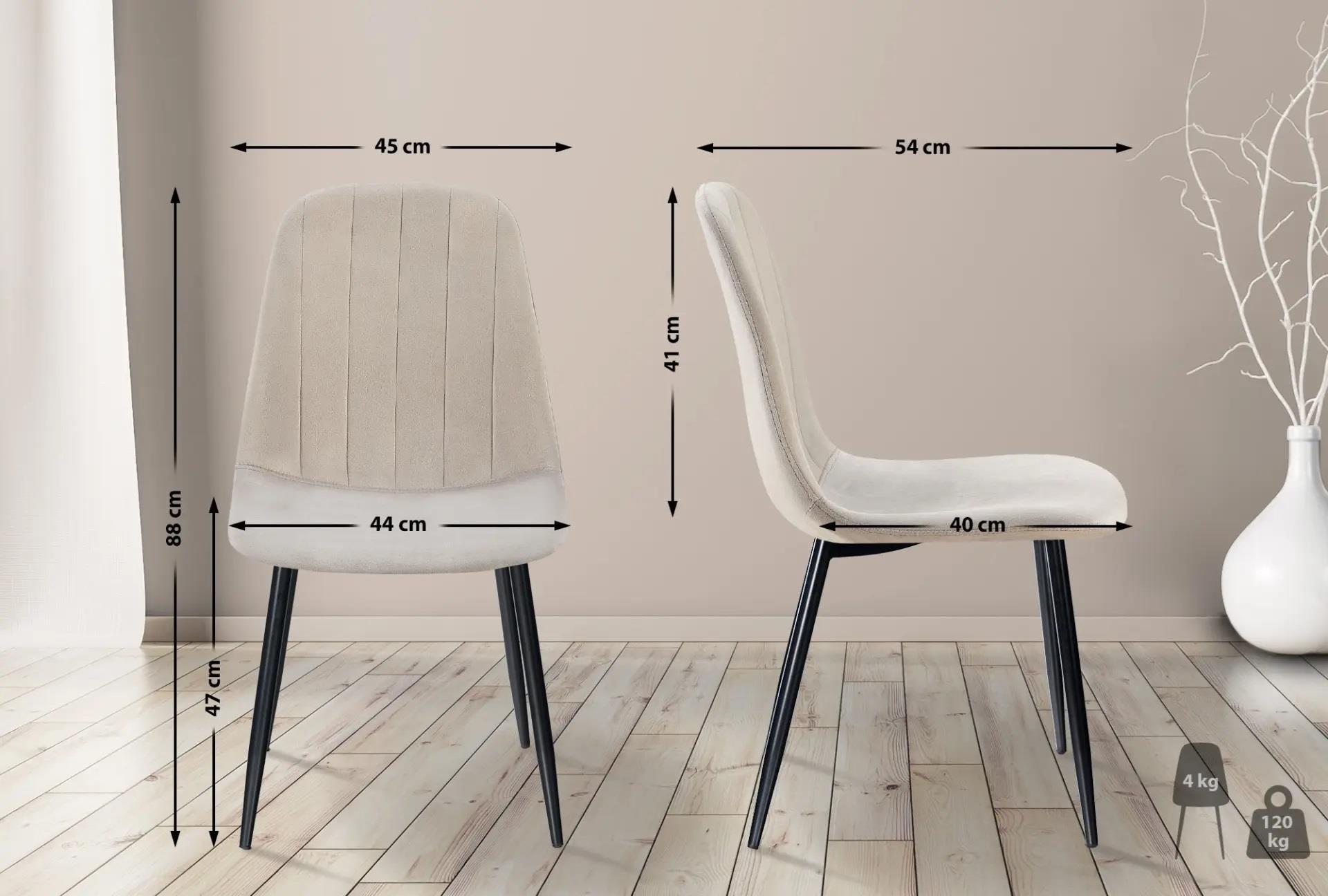 Stelaż wykonany jest z matowego czarnego metalu. Solidny materiał zapewnia trwałość krzesła, a jednocześnie nadaje mu nowoczesny i elegancki charakter. Nogi zostały wyposażone w antypoślizgowe stopki, które jednocześnie ochronią podłogę, na której krzesło będzie użytkowane.