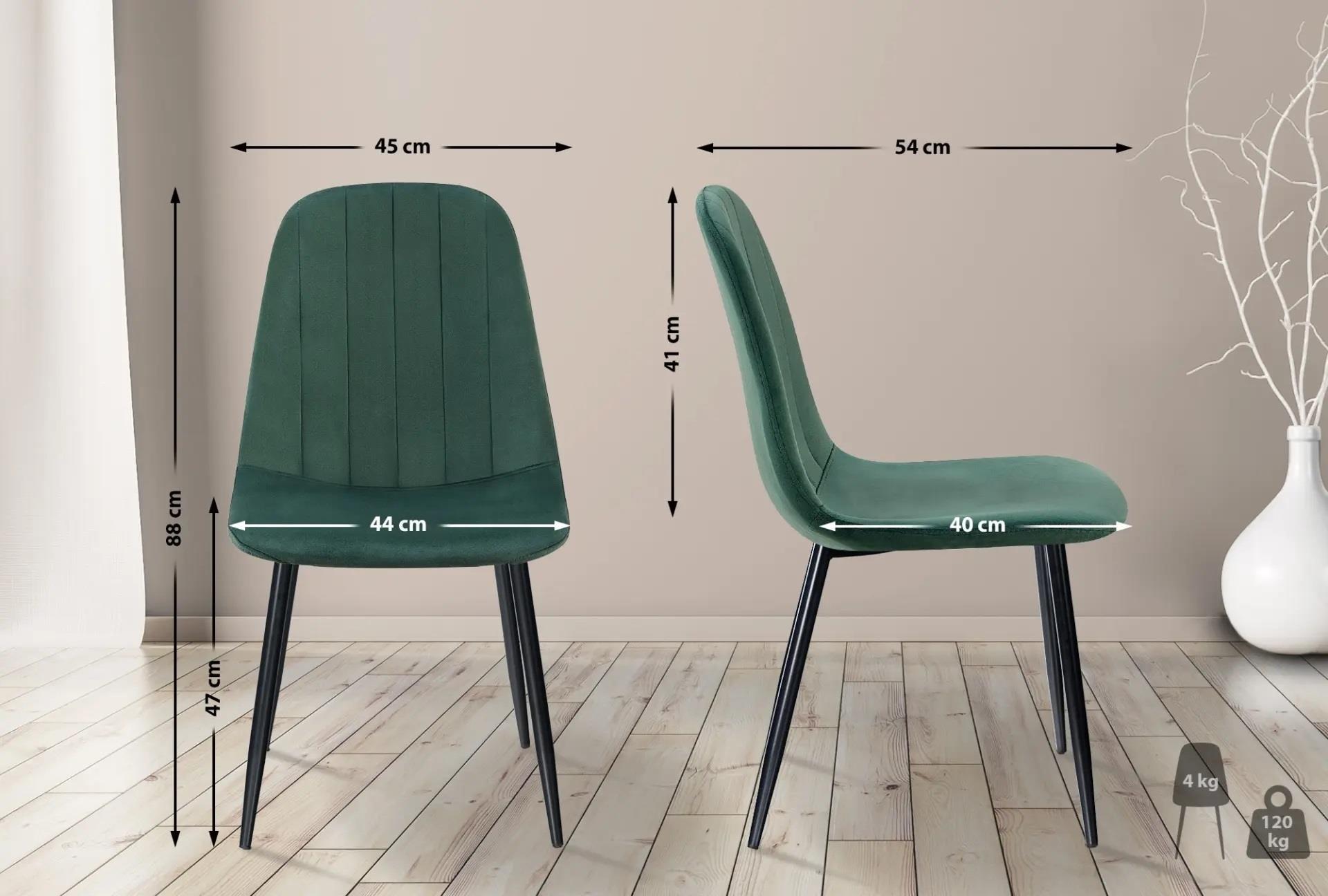 Stelaż wykonany jest z matowego czarnego metalu. Solidny materiał zapewnia trwałość krzesła, a jednocześnie nadaje mu nowoczesny i elegancki charakter. Nogi zostały wyposażone w antypoślizgowe stopki, które jednocześnie ochronią podłogę, na której krzesło będzie użytkowane.