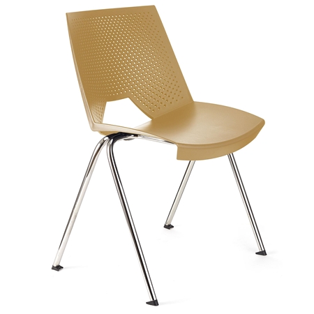 Do produkcji krzesła użyto materiały wysokiej jakościSiedzisko i oparcie wykonane zostały z wytrzymałego tworzywa sztucznego, a ich kształt zapewnia wysoki komfort użytkowania. Dodatkowo warto zaznaczyć, że oparcie jest perforowane, co umożliwia wentylację. Konstrukcja krzesła opiera się na ramie ze stalowych rurek z czterema nogami. Idealnie sprawdzi się jako wygodne i wysokiej jakości siedzisko dla gości i klientów.