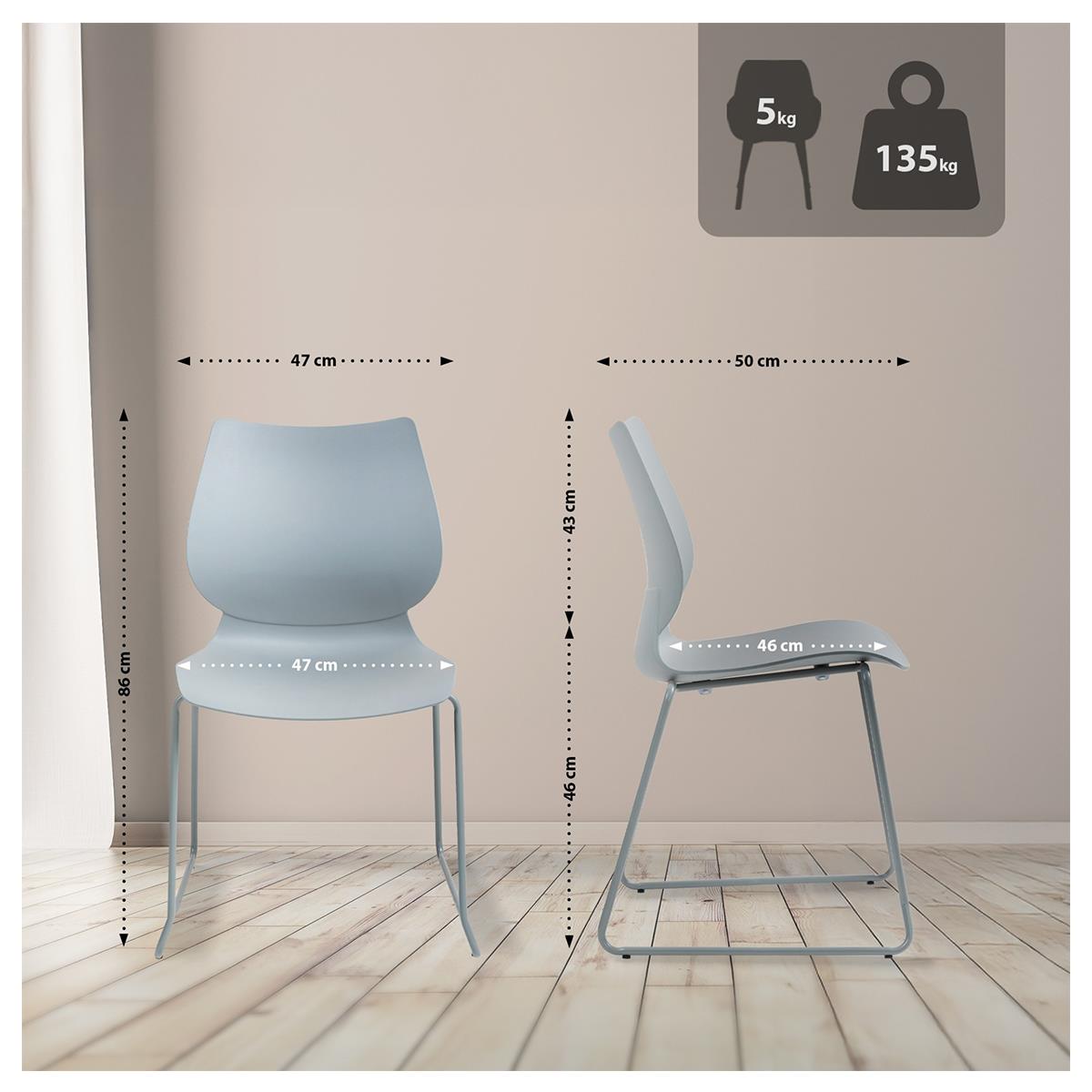 Model ten wykonany został z wysokiej jakości materiałów, dzięki czemu jest zarówno praktyczny, jak i estetyczny. Siedzisko krzesła wykonane jest z polipropylenu, łatwego w pielęgnacji materiału. Stelaż natomiast wyprodukowany został z solidnej stali, zapewniając nośność do 135 kg. Dodatkowo nogi każdego krzesła zostały wyposażone w ochraniacze, aby zapobiegać ewentualnym uszkodzeniom podłogi.