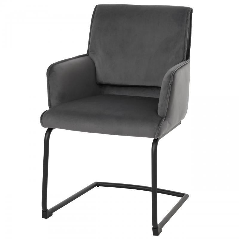 Konstrukcja krzesła na płozach wykonana jest z solidnego metalu w eleganckim czarnym kolorze, który zapewnia stabilne siedzenie i zwiększa wytrzymałość mebla. Płozy krzesła zostały wyposażone w praktyczne stopki, które chronią powierzchnię, na której używane jest krzesło i zapobiegają uszkodzeniu podłogi.