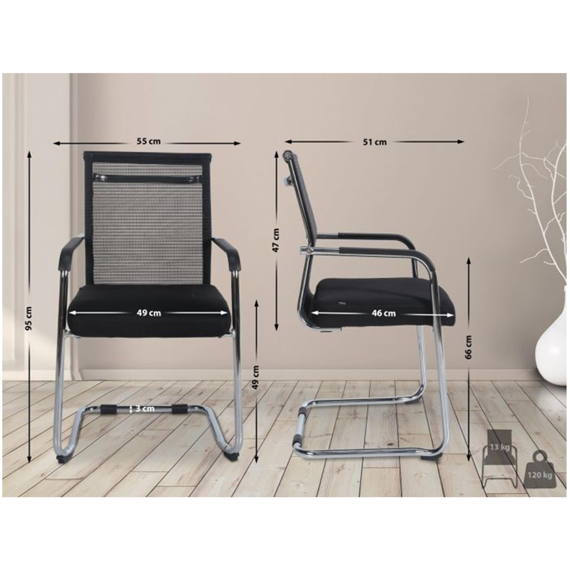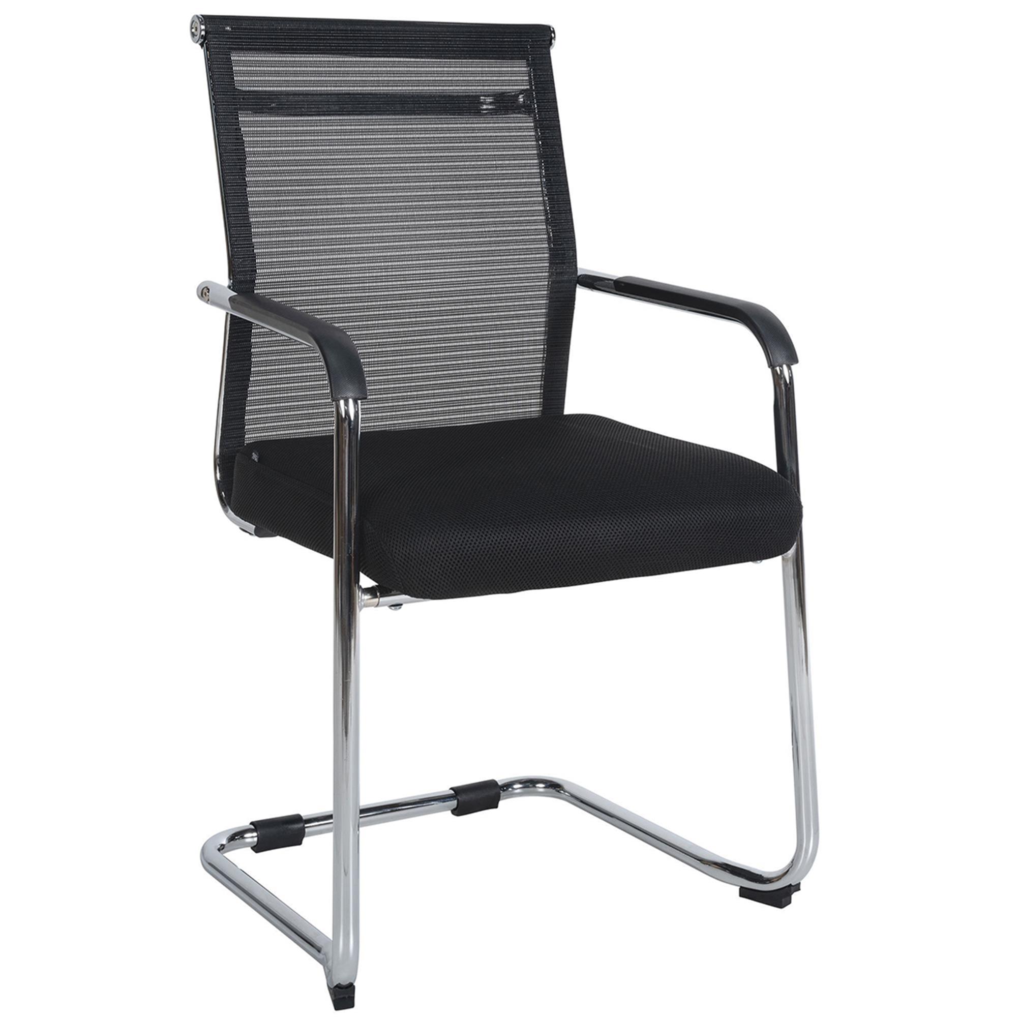 Krzesło Konferencyjne ORES, Metalowy Chromowany Stelaż, Oddychająca Siatka i Tkanina kolor Czarny