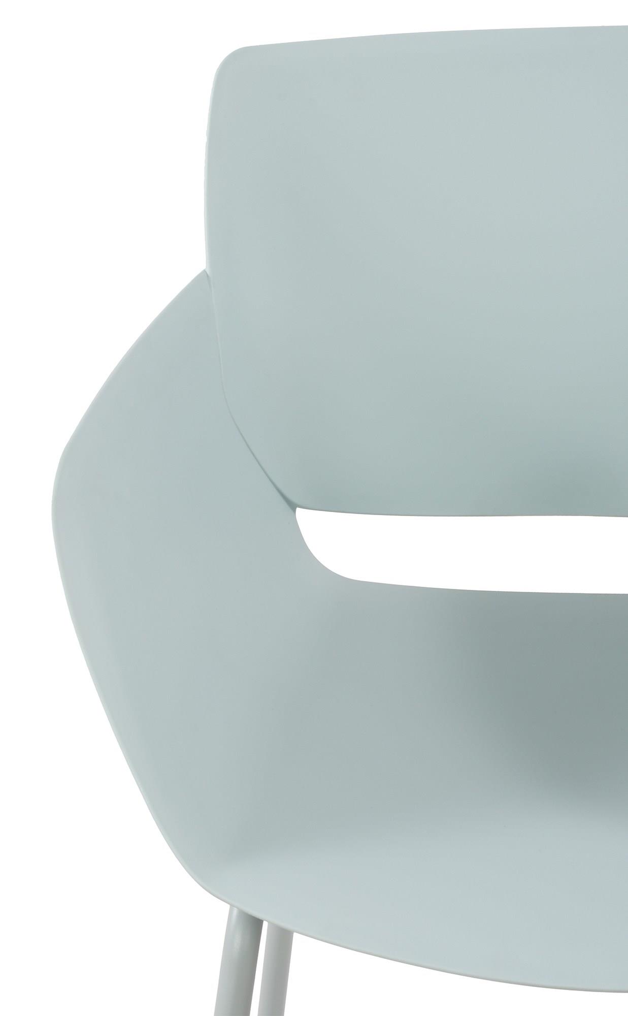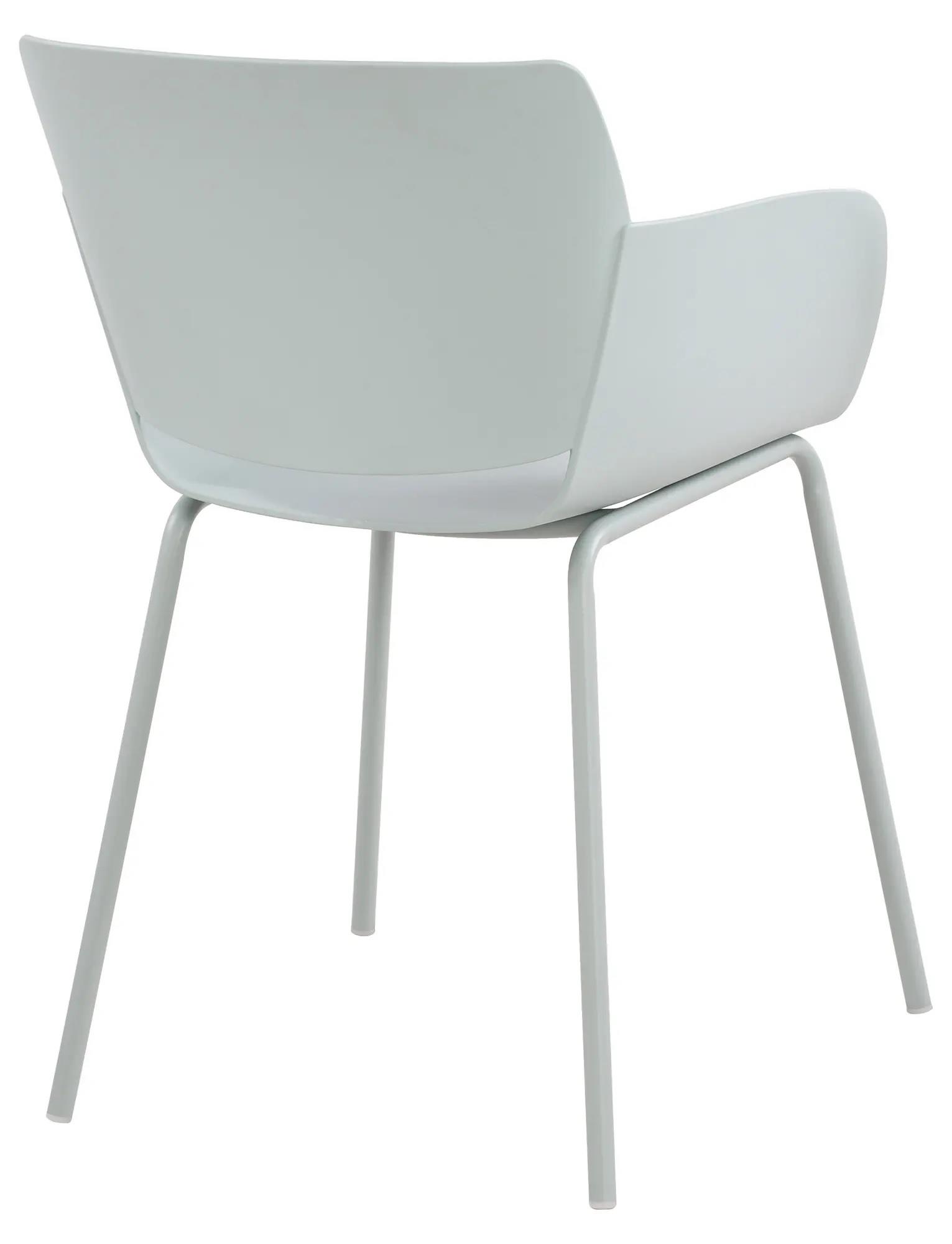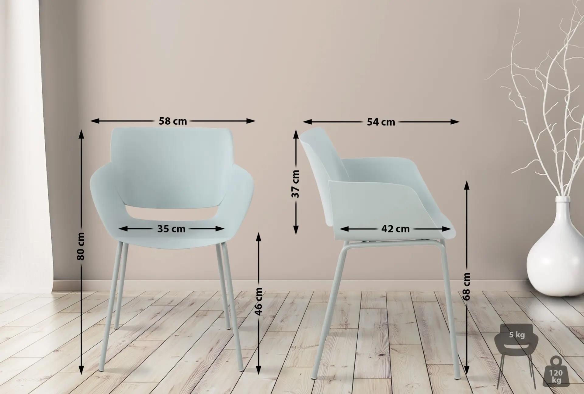 Okalające siedzisko wykonane jest z polipropylenu, solidnego i trwałego materiału, który pozwala na użytkowanie krzesła również na zewnątrz. Tworzywo jest odporne i łatwe w czyszczeniu, co jest bardzo ważne w codziennym użytkowaniu. Podłokietniki stanowią dodatkowy plus do komfortu tego modelu.