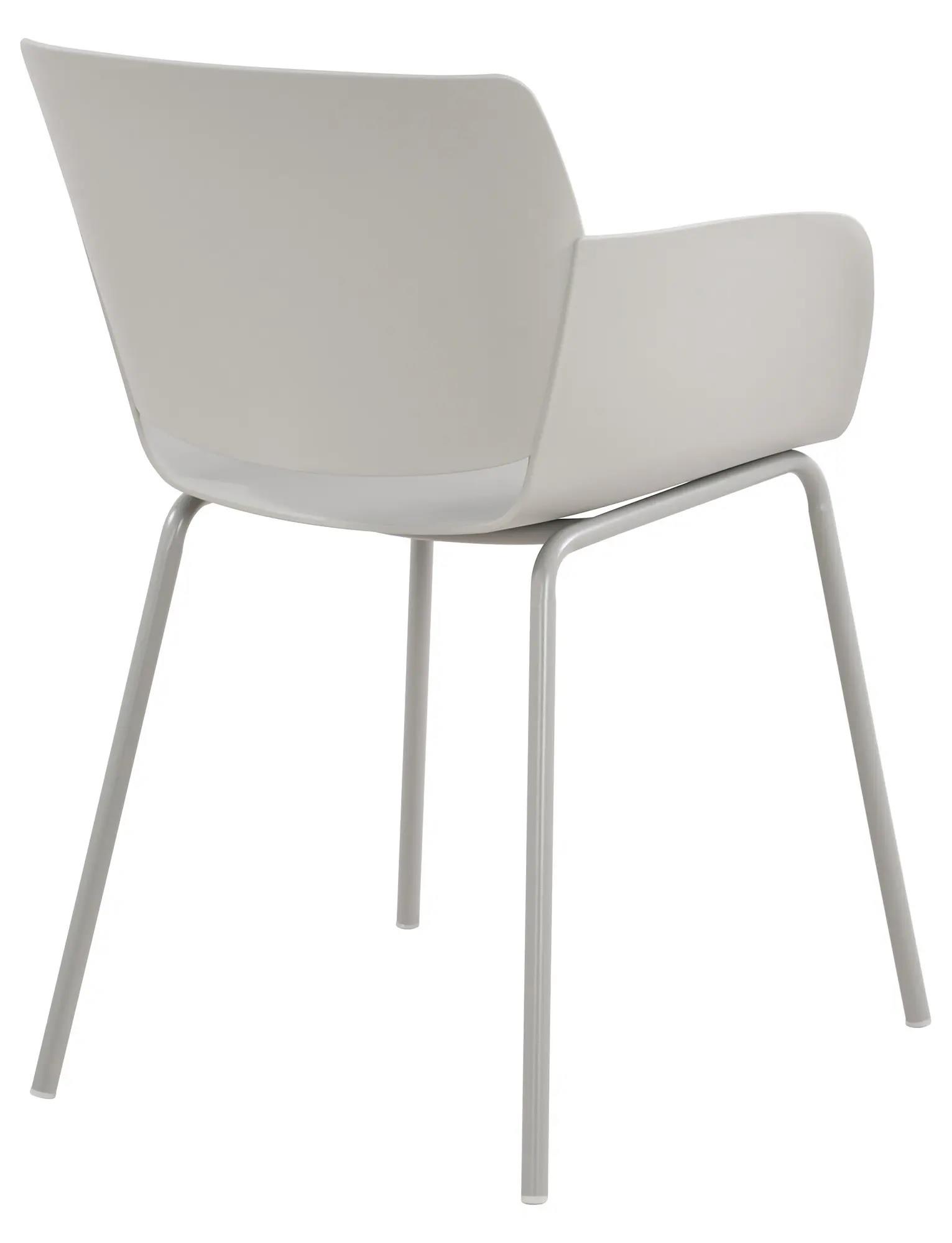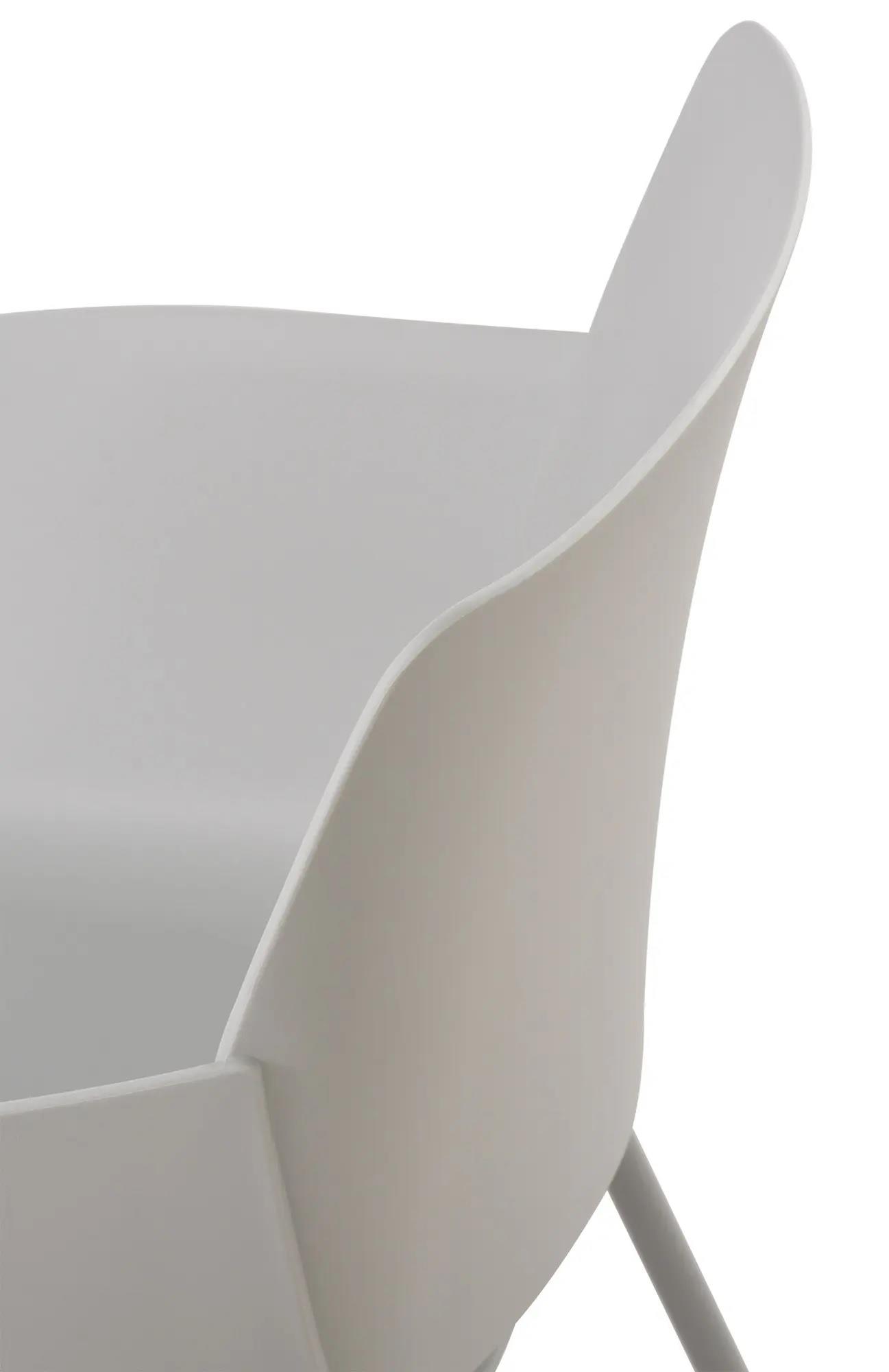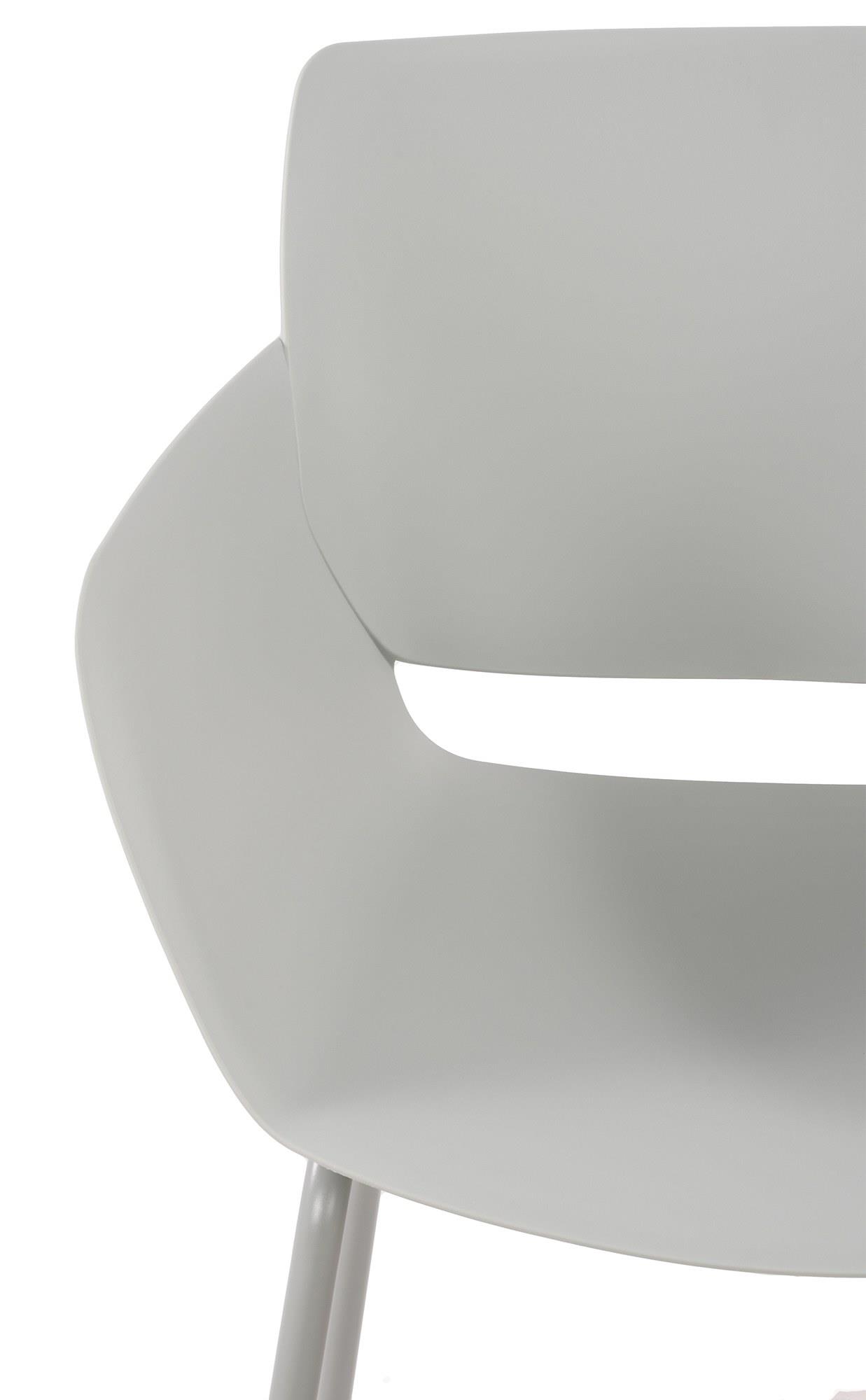 Okalające siedzisko wykonane jest z polipropylenu, solidnego i trwałego materiału, który pozwala na użytkowanie krzesła również na zewnątrz. Tworzywo jest odporne i łatwe w czyszczeniu, co jest bardzo ważne w codziennym użytkowaniu. Podłokietniki stanowią dodatkowy plus do komfortu tego modelu.