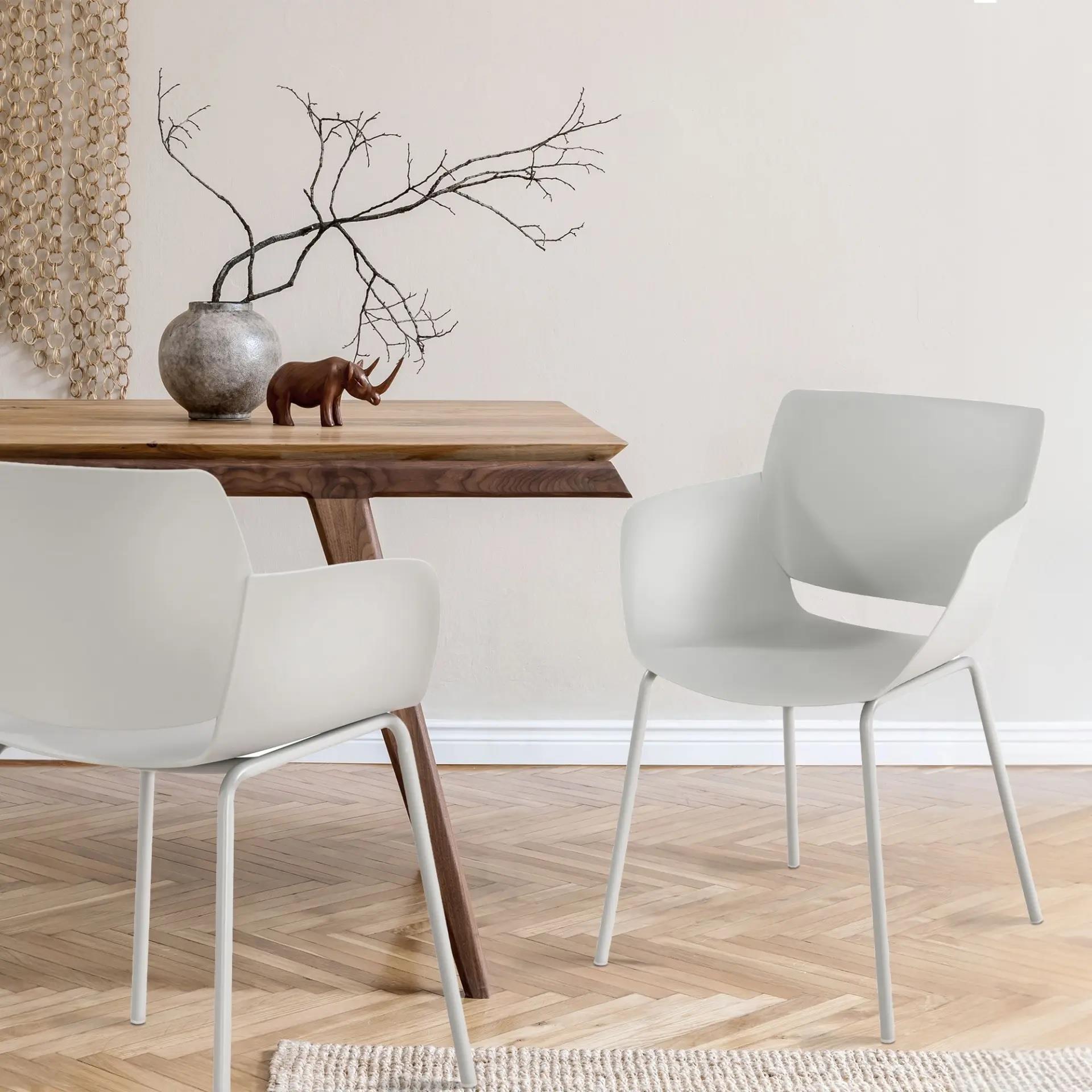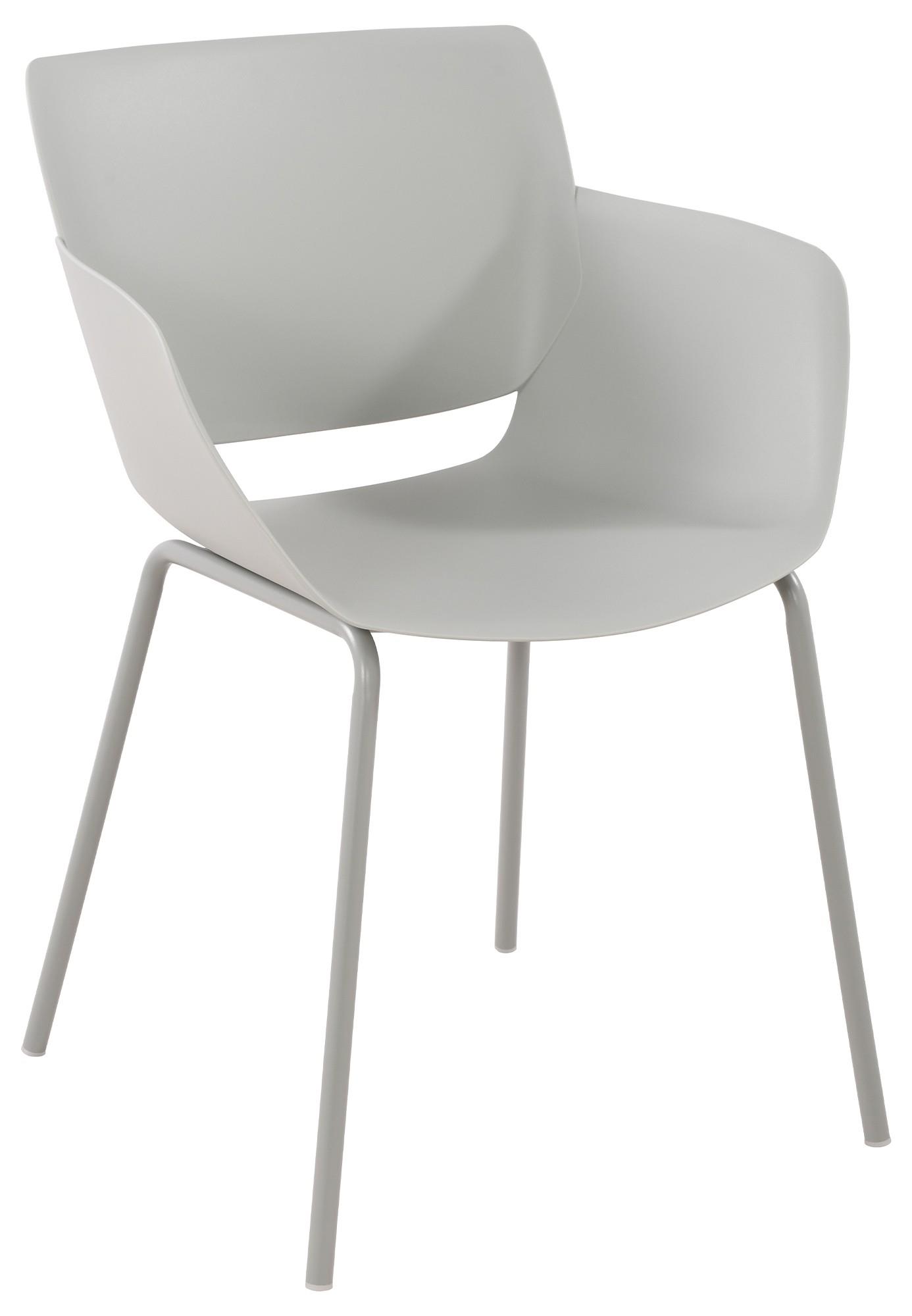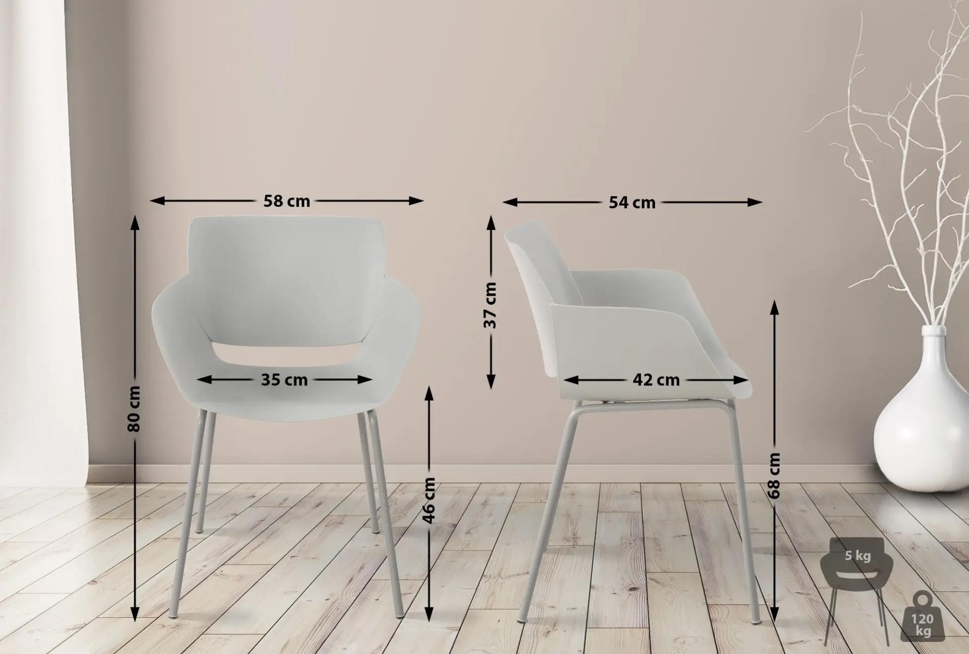 Okalające siedzisko wykonane jest z polipropylenu, solidnego i trwałego materiału, który pozwala na użytkowanie krzesła również na zewnątrz. Tworzywo jest odporne i łatwe w czyszczeniu, co jest bardzo ważne w codziennym użytkowaniu. Podłokietniki stanowią dodatkowy plus do komfortu tego modelu.