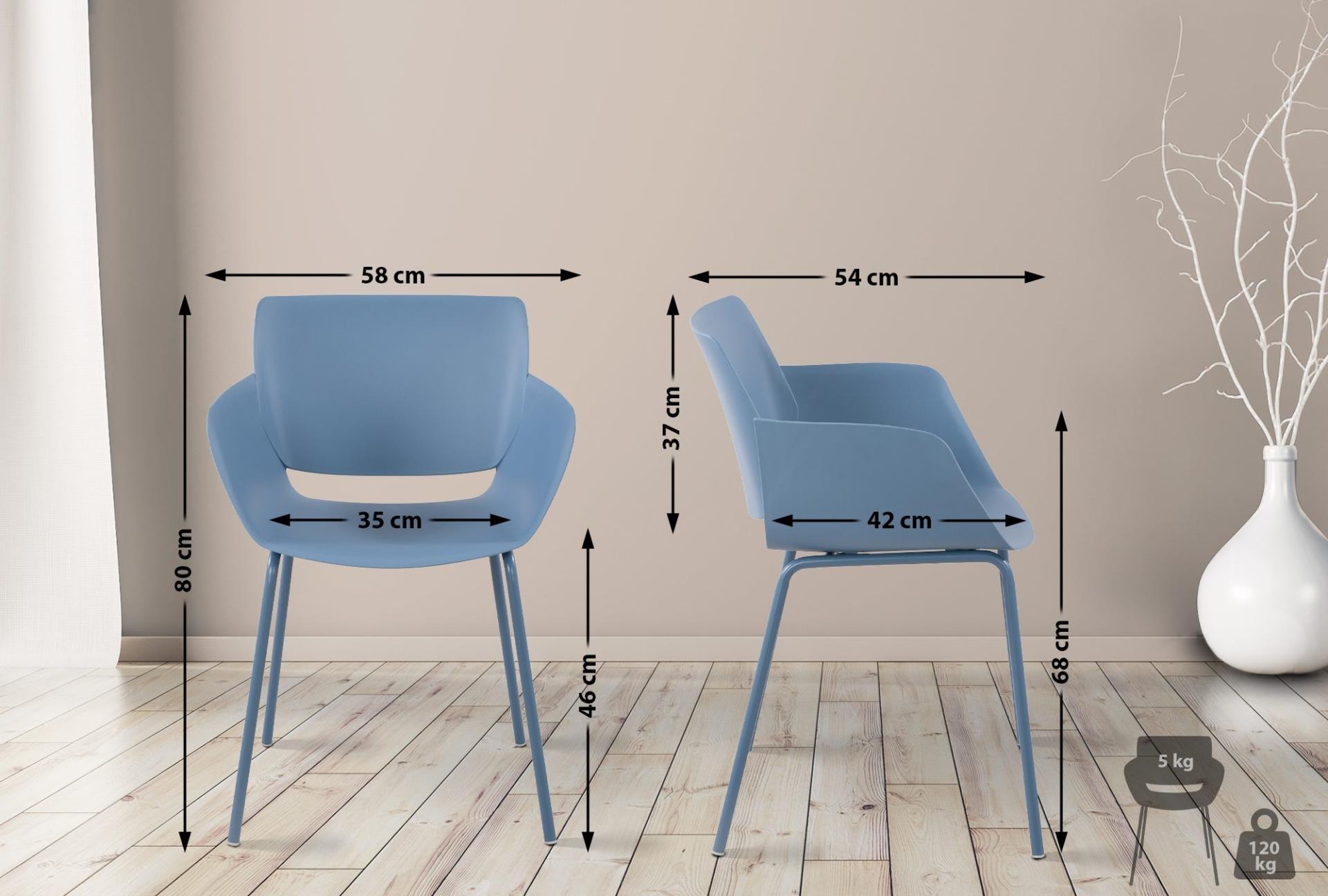 Okalające siedzisko wykonane jest z polipropylenu, solidnego i trwałego materiału, który pozwala na użytkowanie krzesła również na zewnątrz. Tworzywo jest odporne i łatwe w czyszczeniu, co jest bardzo ważne w codziennym użytkowaniu. Podłokietniki stanowią dodatkowy plus do komfortu tego modelu.