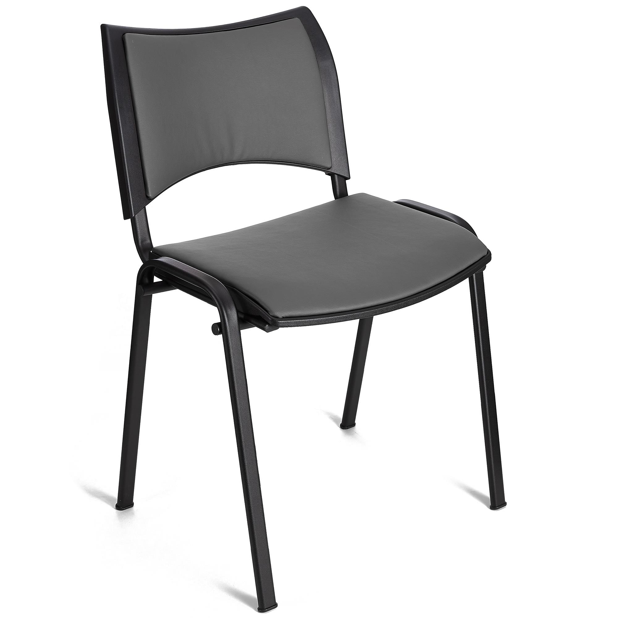 Krzesło Konferencyjne ROMEL SKÓRA, Wygodna Wyściółka, Sztaplowane, Czarne Nogi, Szare
