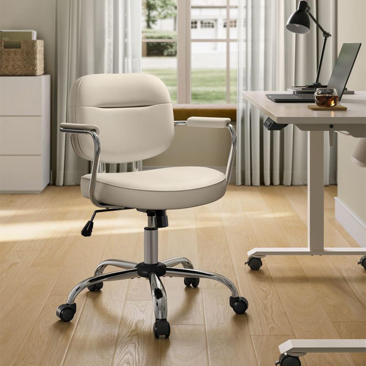 Krzesło Obrotowe CLASSIC, Elegancki Design, Regulowana Wysokość, Miękka Wyściółka, Ekoskóra kolor Kremowy