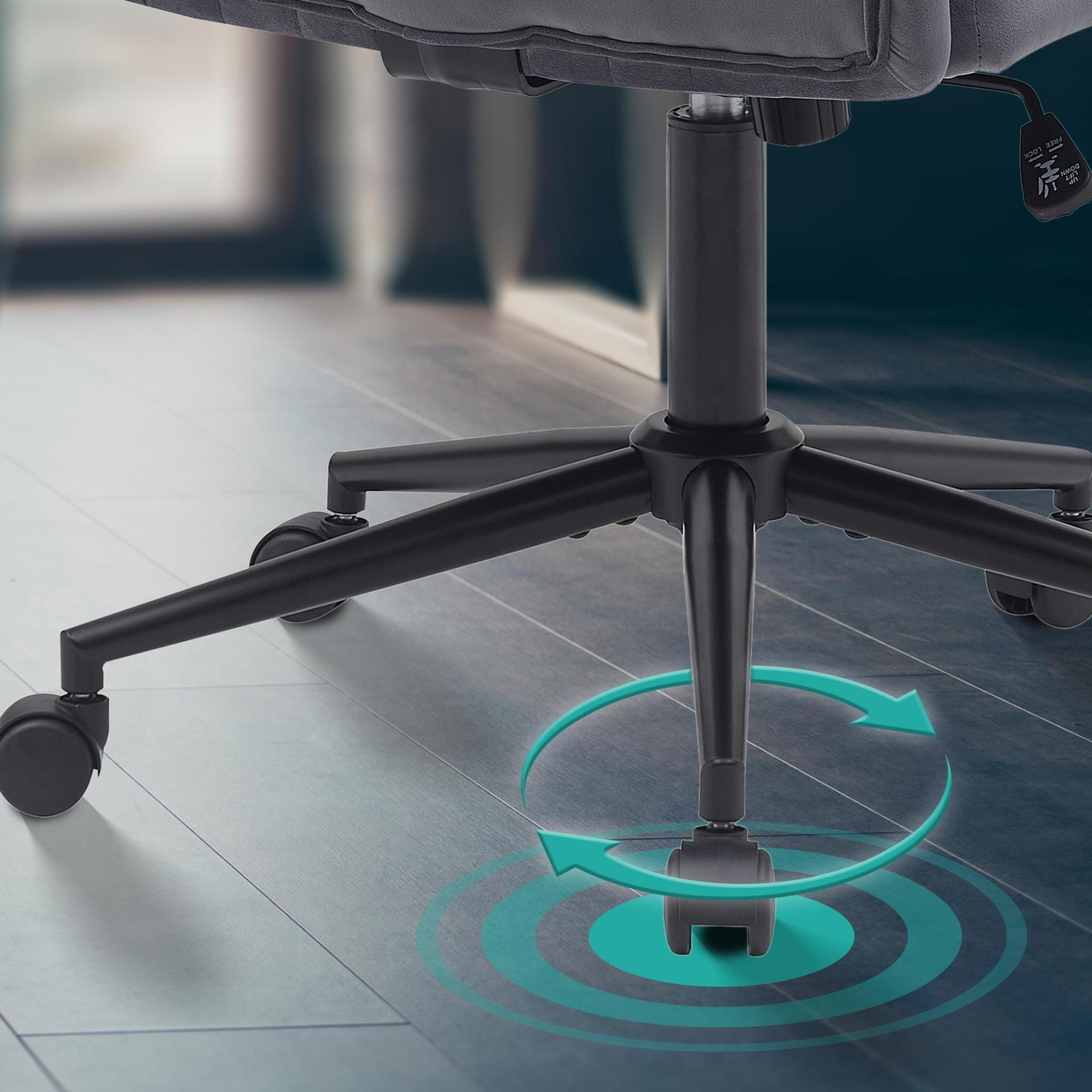 Model wyróżnia się również w kategorii komfortu. Siedzisko i oparcie posiadają miękką i wygodną tapicerkę, która pozwala na wielogodzinne wygodne siedzenie. Obrotowe siedzisko posiada regulację wysokości, abyś mógł dopasować je do swoich potrzeb. Dodatkowym plusem w zakresie komfortu jest mechanizm bujania z regulacją siły oporu.