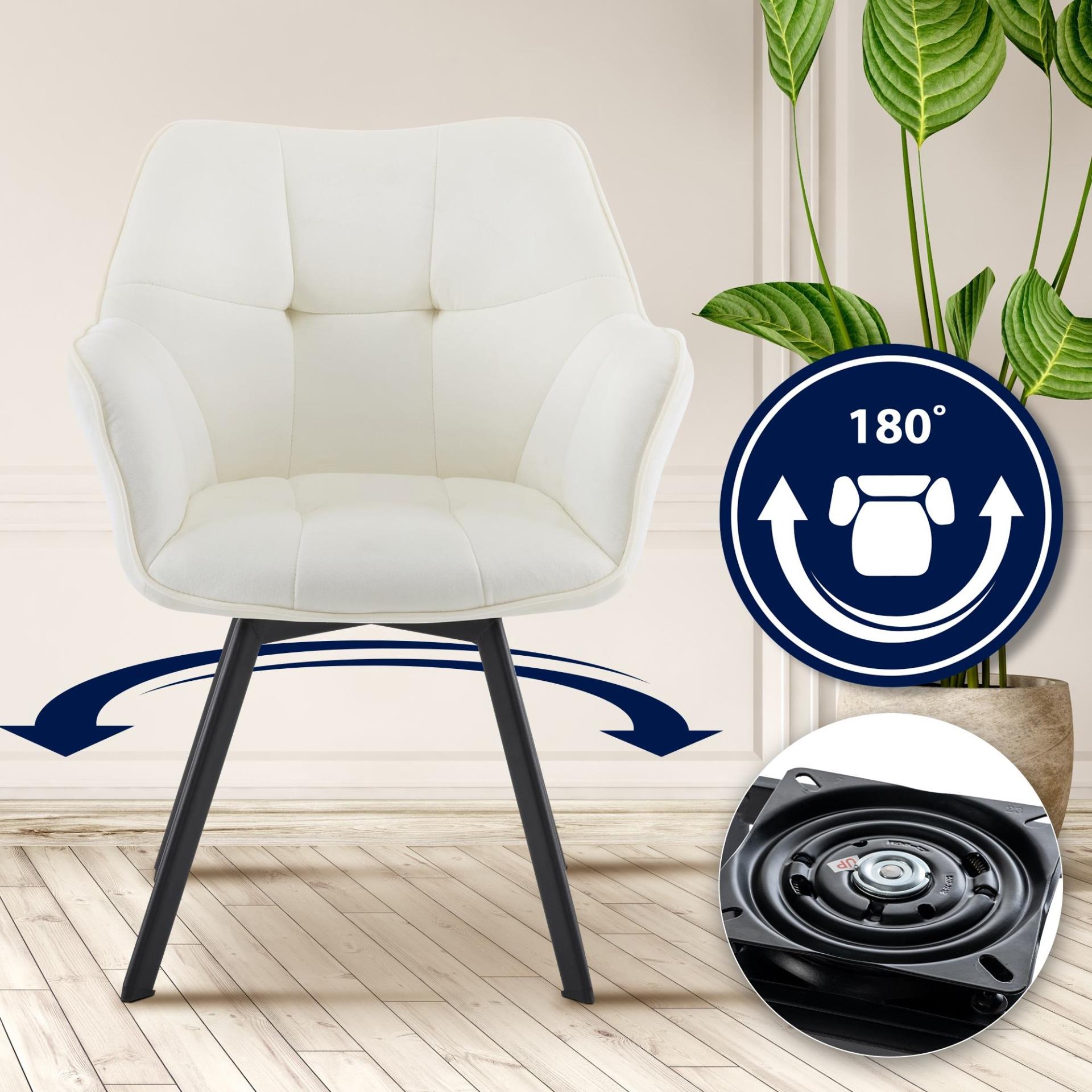 Krzesło Wizytowe SUTTON, Wygodne Obrotowe Siedzisko, Nowoczesny Design, Metalowe Nogi, Aksamit kolor Kremowy