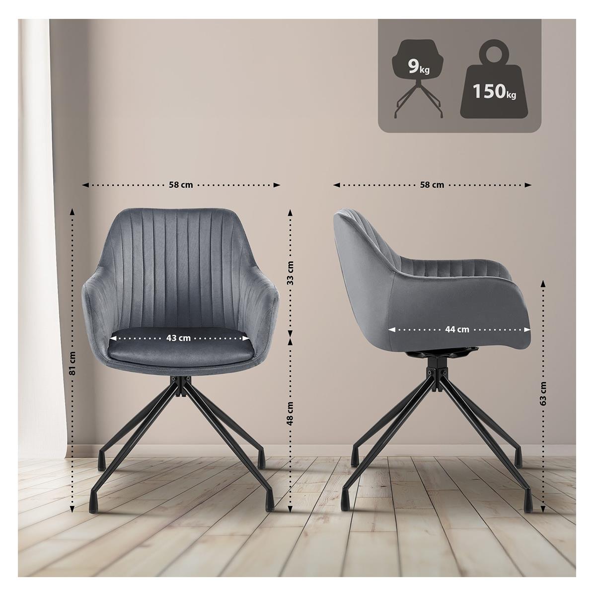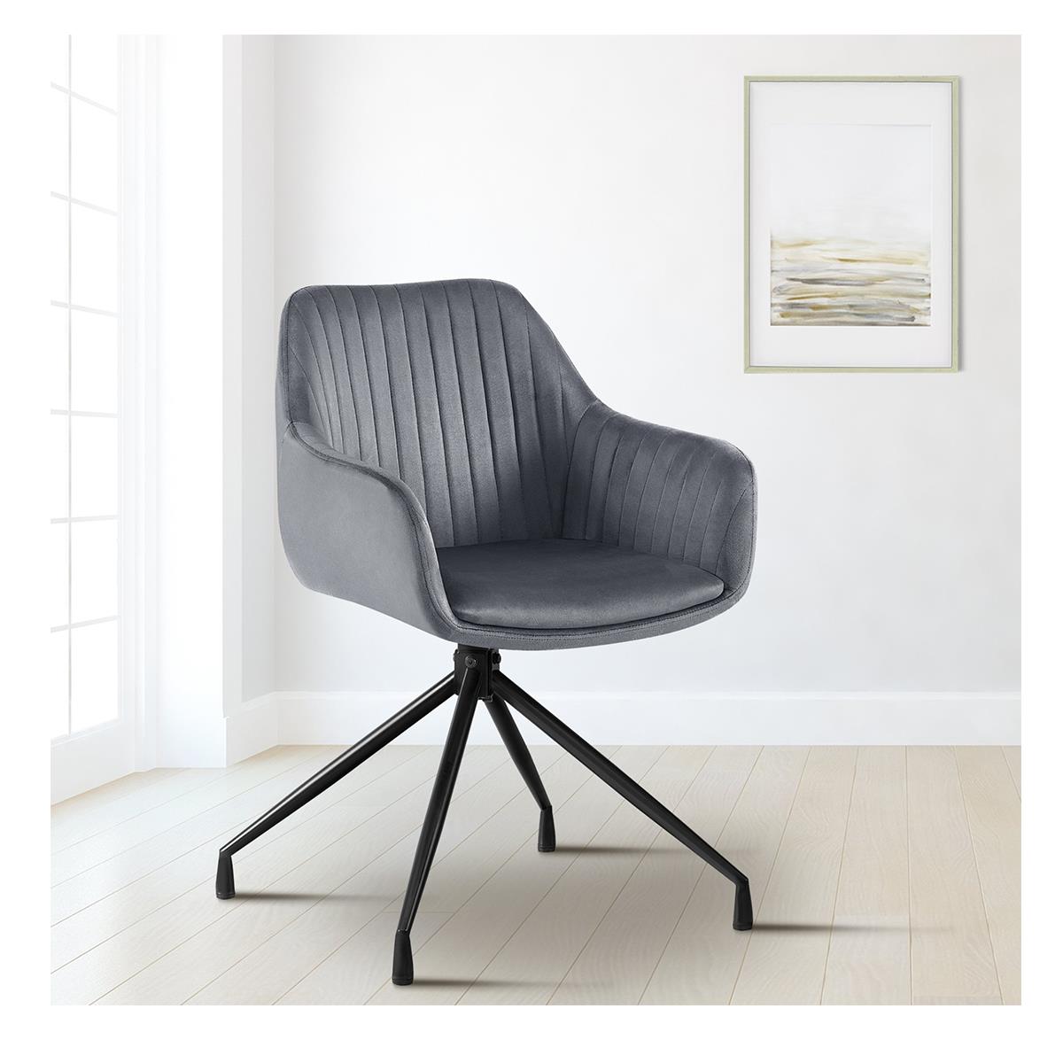 Krzesło Wizytowe TANNER, Obrotowe Wyściełane Siedzisko, Metalowe Nogi, Aksamit kolor Szary