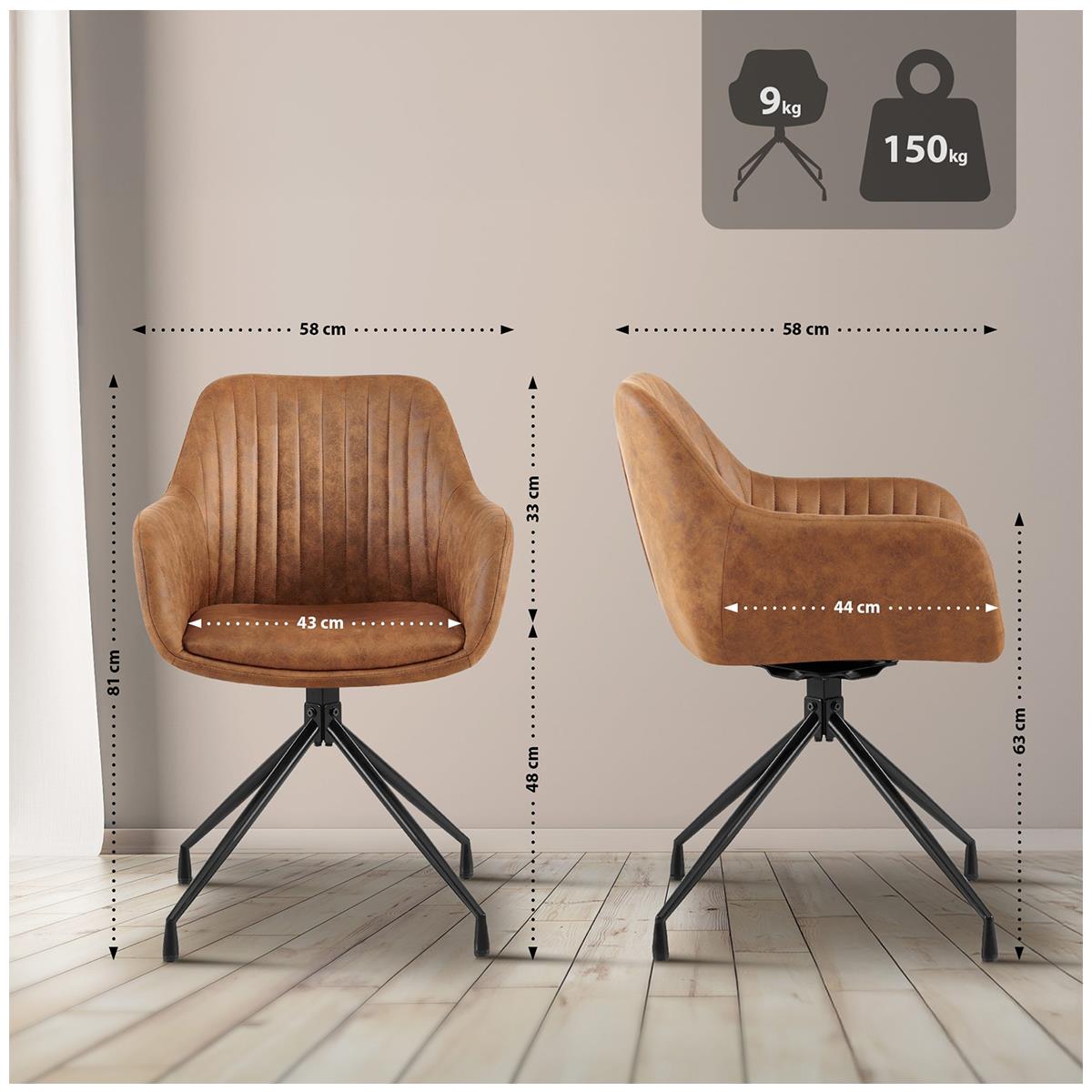 Krzesło Wizytowe TANNER, Obrotowe Wyściełane Siedzisko, Metalowe Nogi, Vintage kolor Brązowy