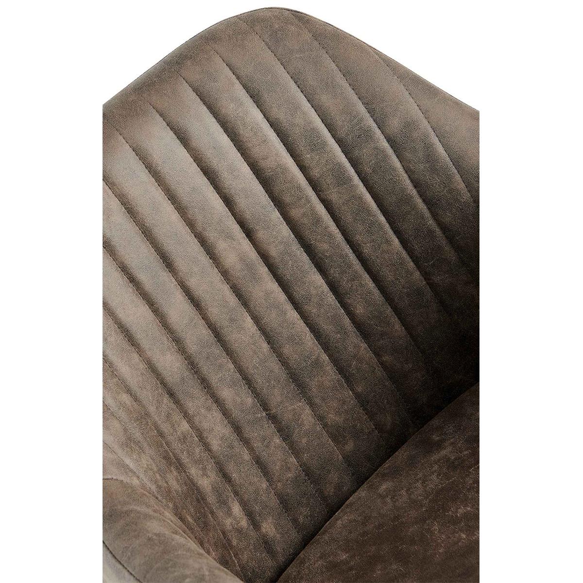 Krzesło zostało pokryte wysokiej jakości imitacją skóry z efektem postarzenia, miękką i wytrzymałą. Pokrycie zostało zaprojektowane z myślą o codziennym użytkowaniu, dzięki czemu jest przyjemne w dotyku, a jednocześnie wytrzymałe i nie sprawia problemów z czyszczeniem. Ponadto ozdobne przeszycia tapicerki nadają temu modelowi elegancki wygląd.