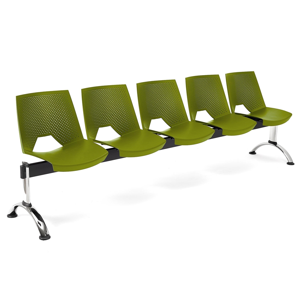 Model ten dostępny jest w różnych konfiguracjach (2, 3, 4 i 5-osobowa), w wersji z blatem i w wielu kolorach, co pozwala na łączenie różnych ławek dla uzyskania pożądanej liczby siedzeń.