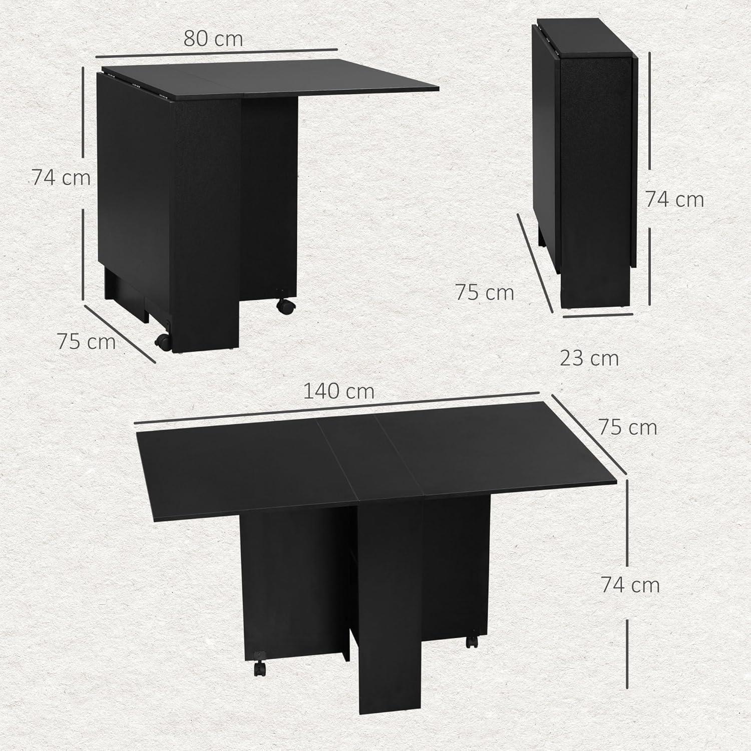 Składany stół do Spotkań MORONI, na 4-6 Osób, Wymiary 120x80x73 cm, Kółka, Laminat kolor Czarny