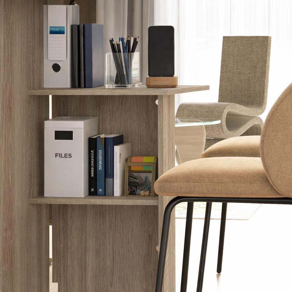 Model wyposażono w praktyczne 2 wewnętrzne półki, które zapewniają dodatkową przestrzeń do przechowywania, a jednocześnie pozostają dyskretnie ukryte po złożeniu blatu. To świetne rozwiązanie na akcesoria stołowe, dokumenty lub inne drobiazgi potrzebne pod ręką.