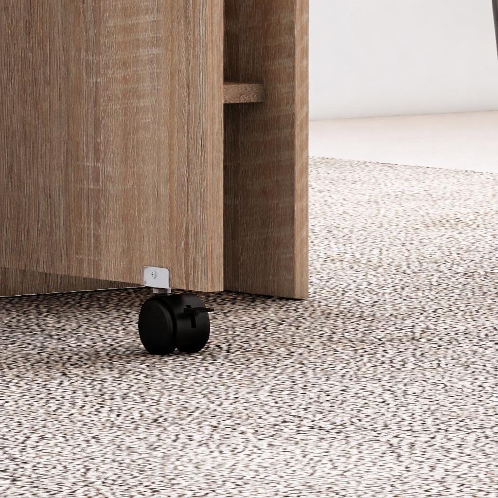 Dodatkowym atutem są 2 kółka z hamulcami, które ułatwiają przemieszczanie stołu oraz stabilne ustawienie go w wybranym miejscu po rozłożeniu. Dzięki temu model ten świetnie sprawdza się jako stół jadalniany, biurko lub mobilny stół pomocniczy podczas spotkań i wydarzeń.