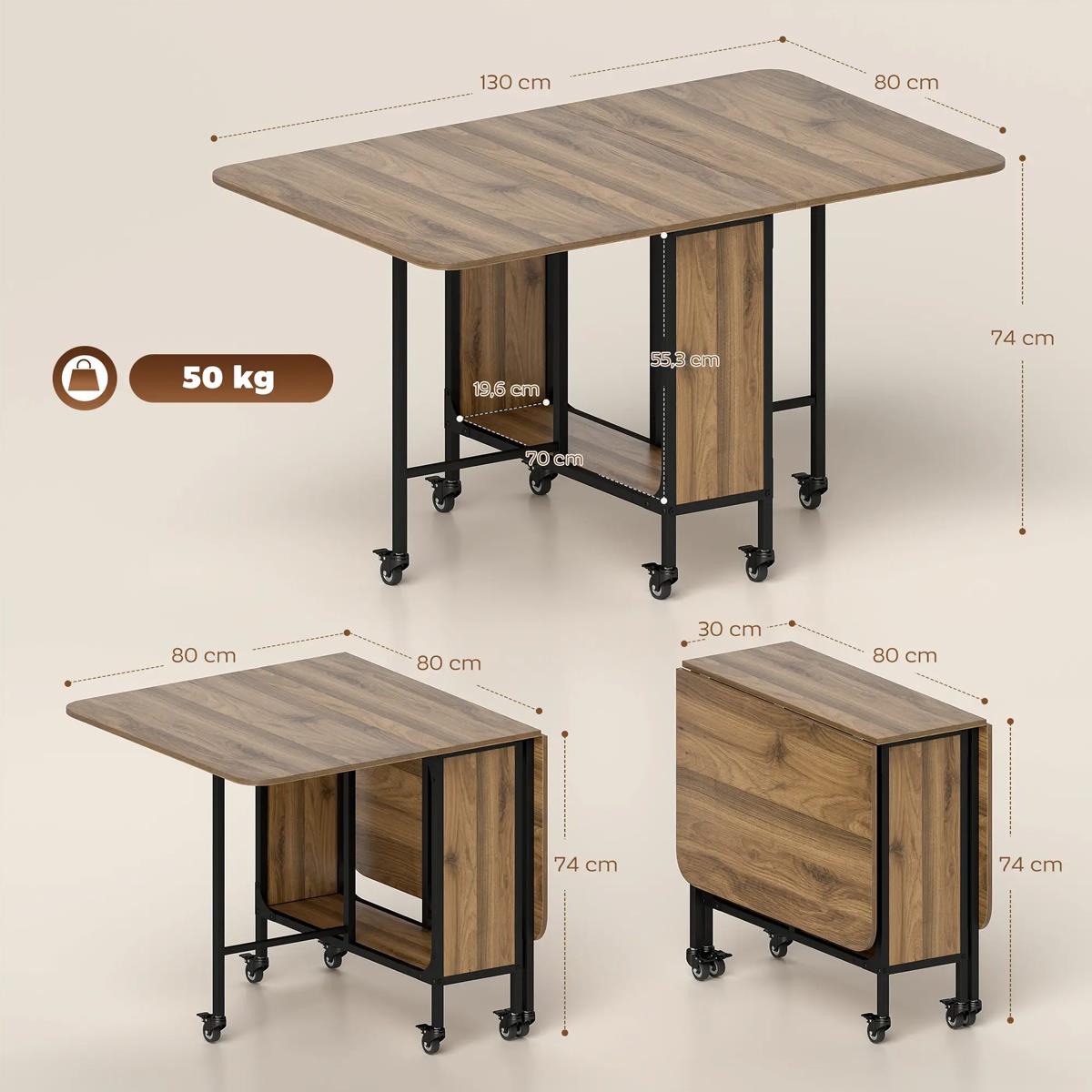 To praktyczne rozwiązanie zaprojektowane z myślą o maksymalnym wykorzystaniu dostępnego miejsca. Dzięki składanym bokom stół można łatwo dostosować do aktualnych potrzeb – w wersji złożonej pełni funkcję wąskiej konsoli, natomiast po rozłożeniu jednego lub obu blatów zapewnia komfortową przestrzeń nawet dla sześciu osób.