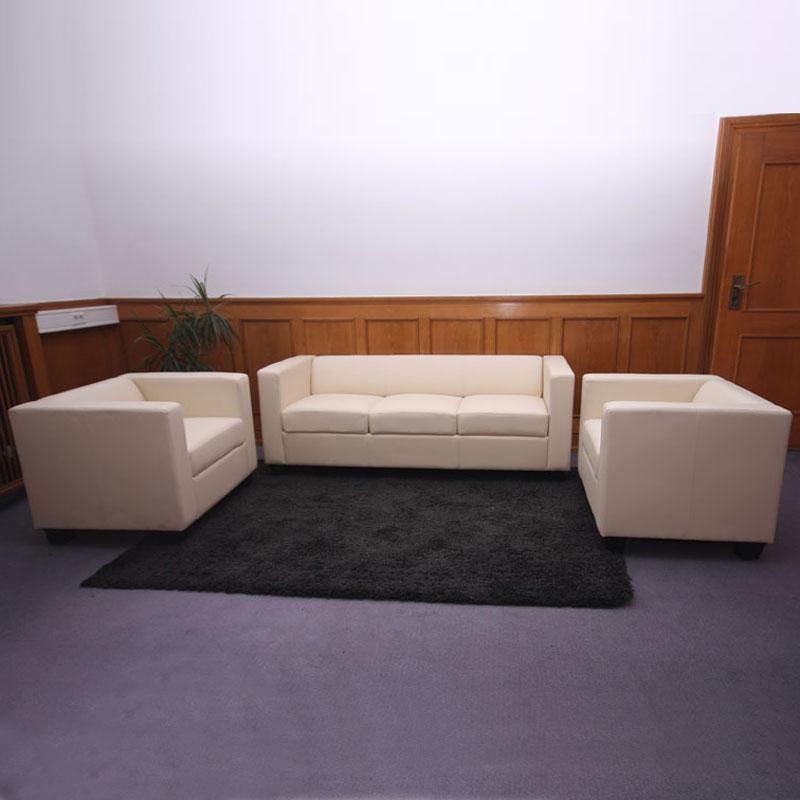 Sofa 3-osobowa BASILIO, Elegancki Design, Duży Komfort, Skóra, Kolor Biały