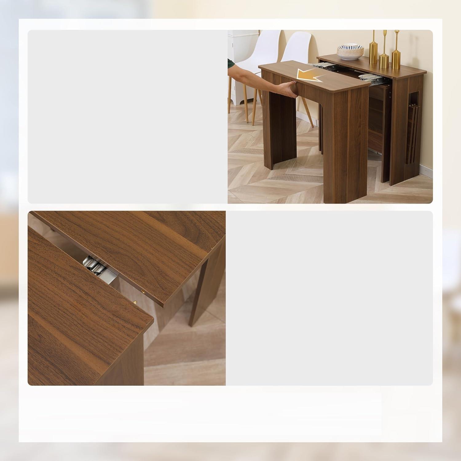 Model wyróżnia się rozkładanym blatem, która pozwala dostosować jego długość od 60 cm do aż 180 cm. W zależności od potrzeb może pełnić funkcję kompaktowego stolika pomocniczego lub pełnowymiarowego stołu dla maksymalnie 6 osób. To idealne rozwiązanie do przestrzeni, w których liczy się każdy metr.