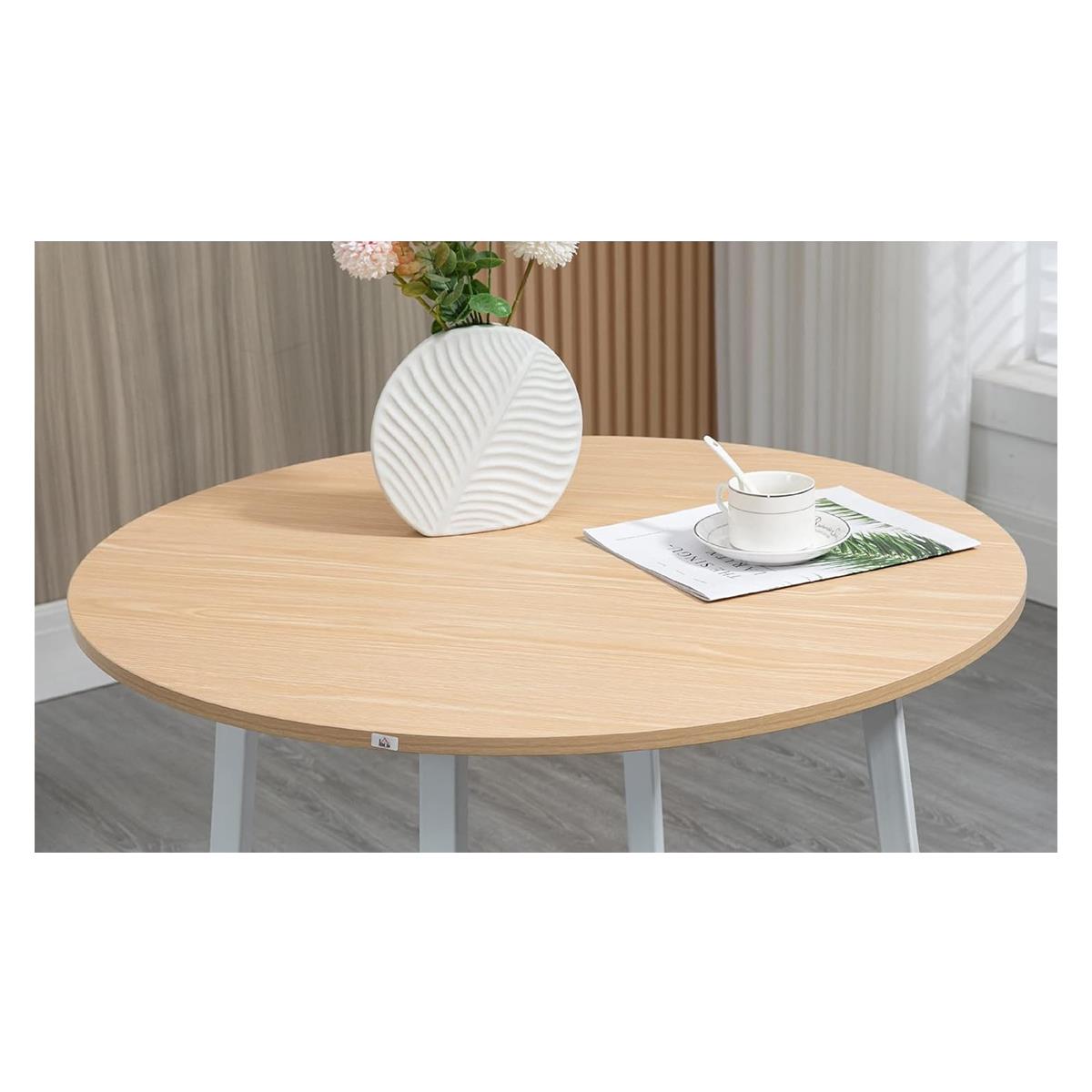Ma prosty design i harmonijne połączenie materiałów. Okrągły blat o średnicy 80 cm sprzyja spotkaniom przy stole, a białe nogi ze stali zapewniają stabilność i nadają meblowi nowoczesny wygląd.