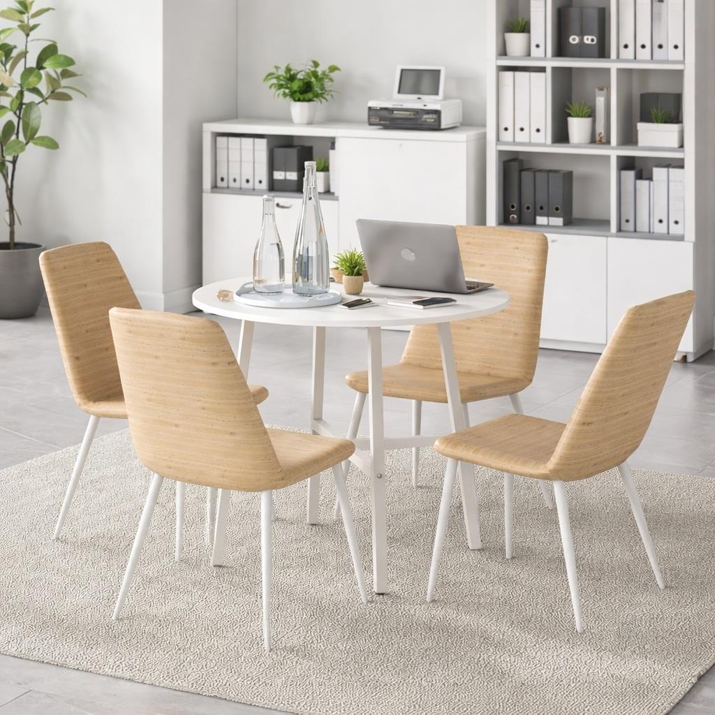 Stół do Spotkań ROGA, Okrągły Blat dla 4 Osób, Nowoczesne Wzornictwo, Metalowe Nogi, Blat kolor Naturalny