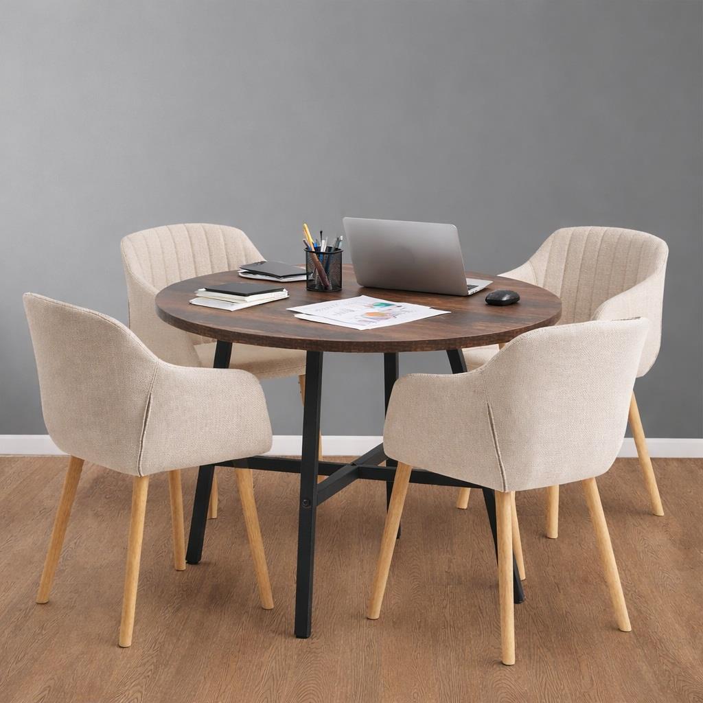 Stół do Spotkań ROGA, Okrągły Blat dla 4 Osób, Nowoczesne Wzornictwo, Metalowe Nogi, Blat kolor Rustykalny Brąz