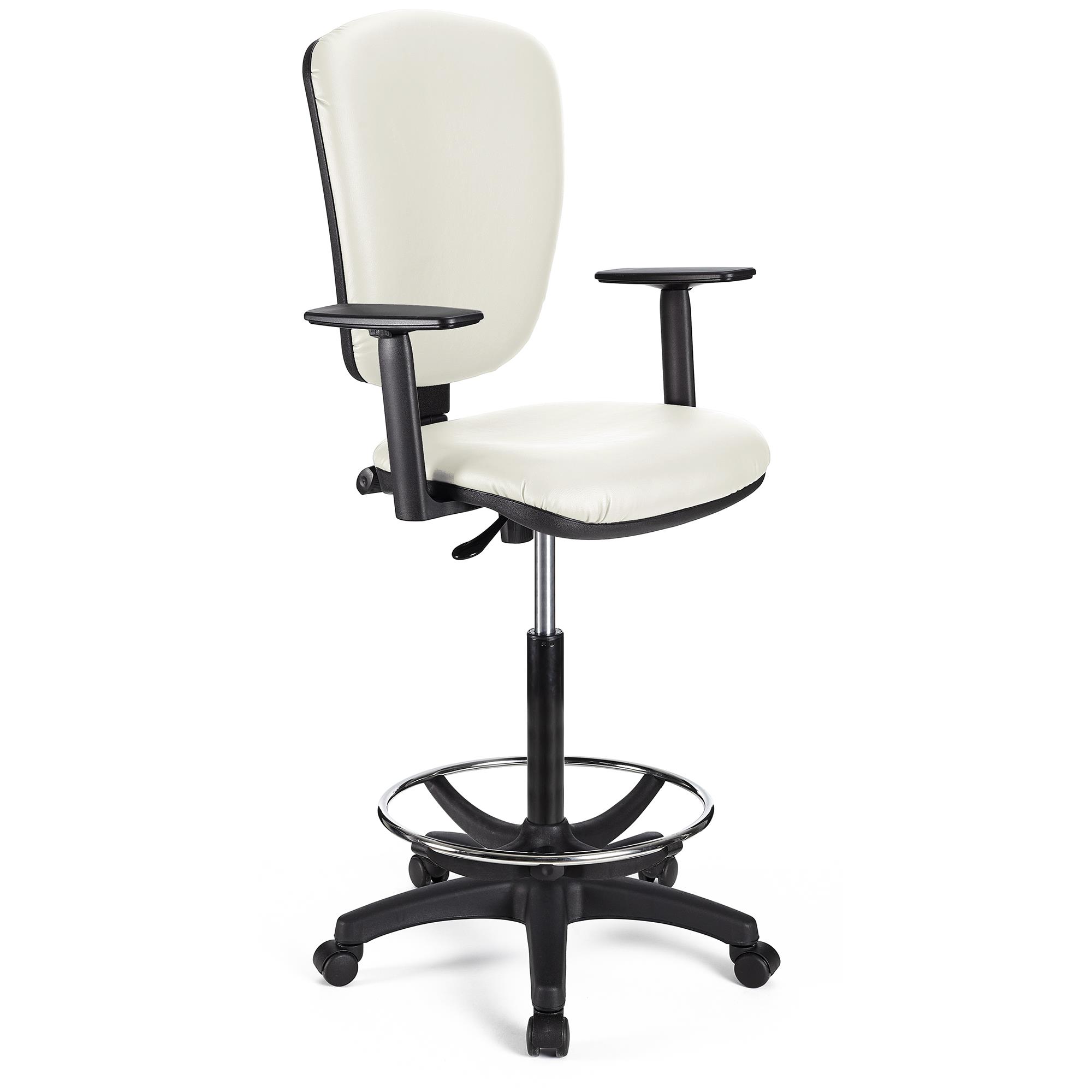 Taboret Biurowy CALIPSO PLUS SKÓRA, Regulowane Oparcie, Gruba Wyściółka, Biały