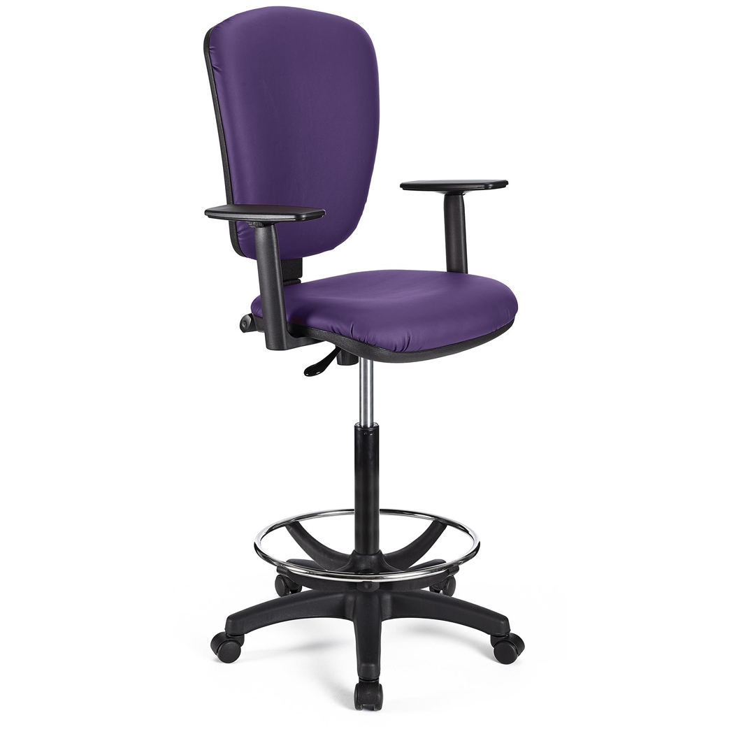 Taboret Biurowy CALIPSO PLUS SKÓRA, Regulowane Oparcie, Gruba Wyściółka, Fioletowy