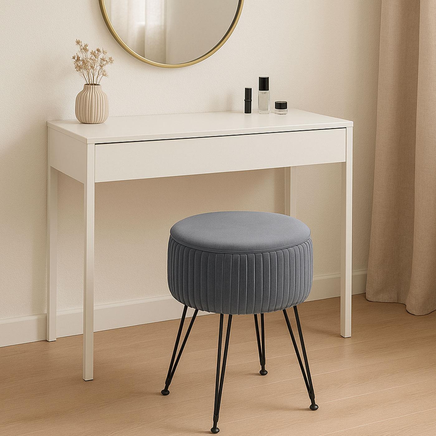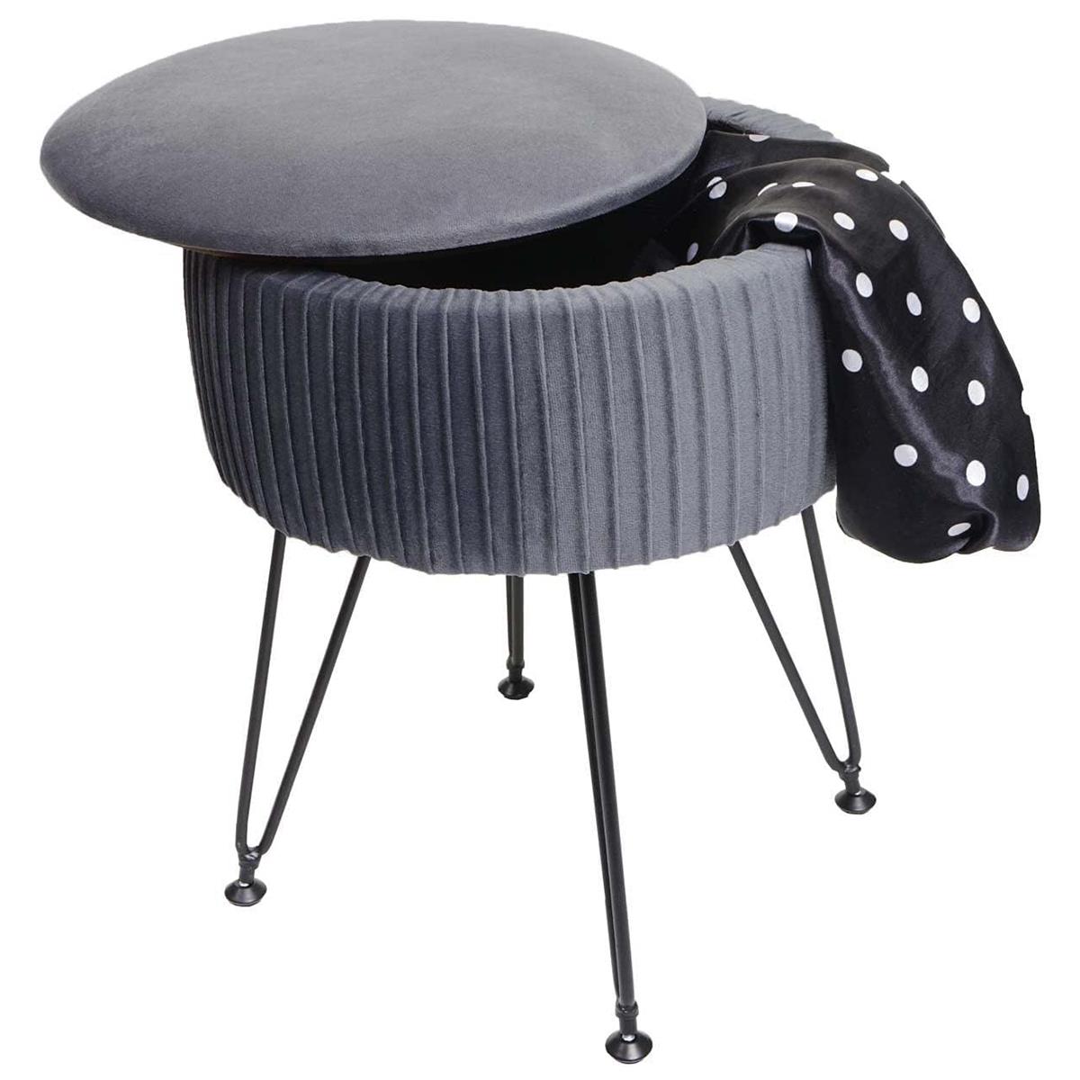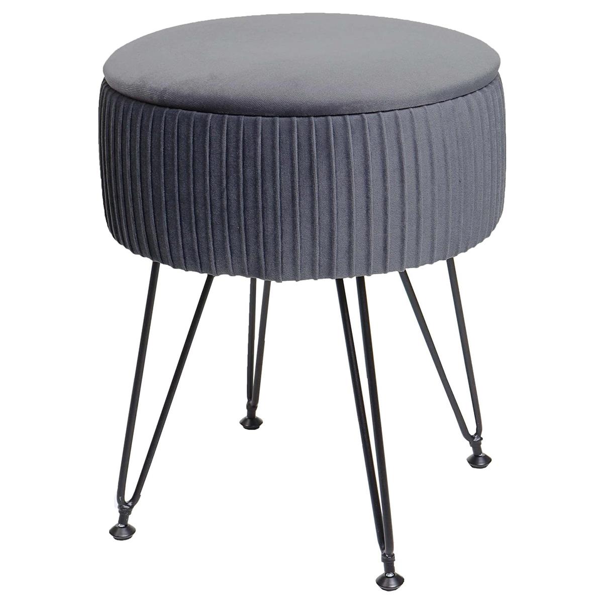 Taboret MIKO, Schowek na Drobiazgi, Ładny i Praktyczny, Czarne Nóżki, Tkanina kolor Szary