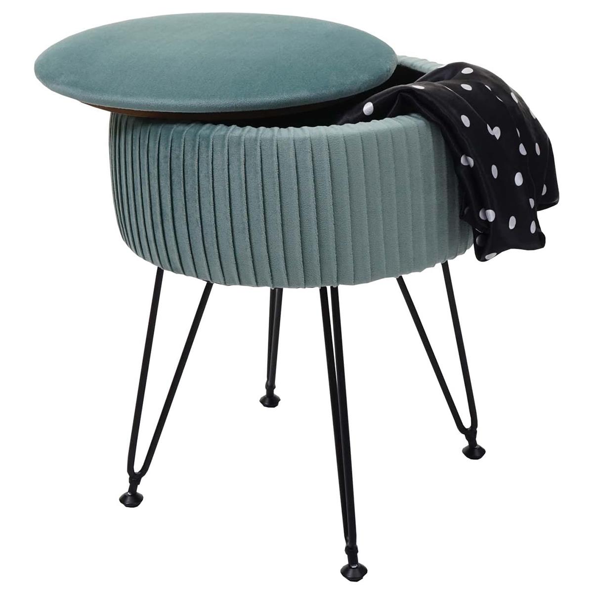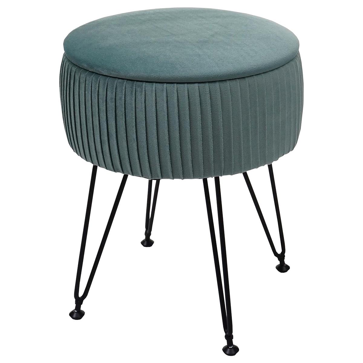 Taboret MIKO, Schowek na Drobiazgi, Ładny i Praktyczny, Czarne Nóżki, Tkanina kolor Zielony