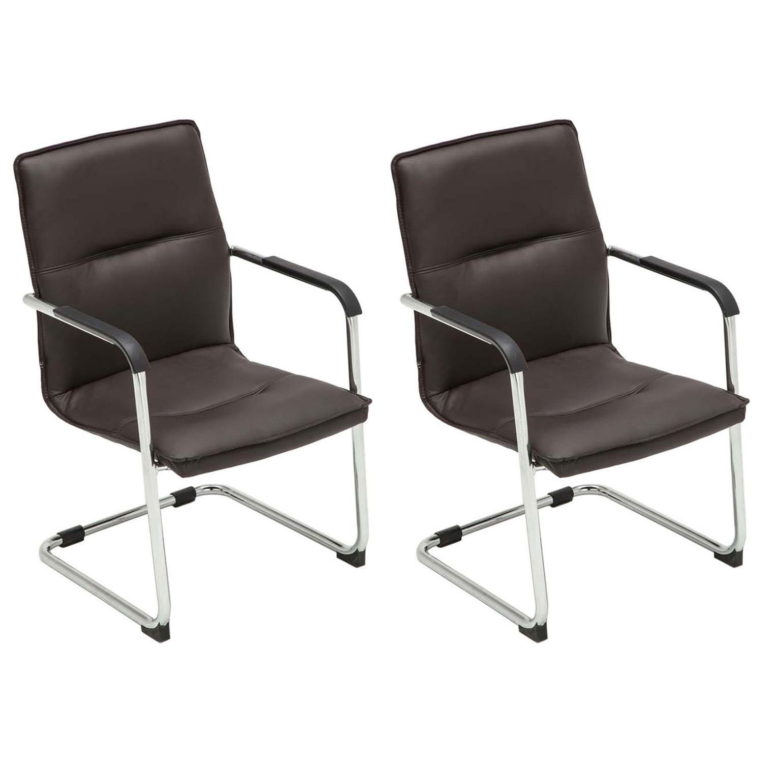 Zestaw 2 szt. Krzesła Konferencyjne GOLIAT, Metalowy Stelaż, Gruba Tapicerka i Elegancki Design, Skóra kolor Brązowy